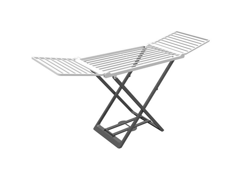 Ez a nagy teherbírású, stabil ruhaszárító összecsukható és állítható magasságú kialakításával kiválóan alkalmazkodik különböző szükségletekhez.