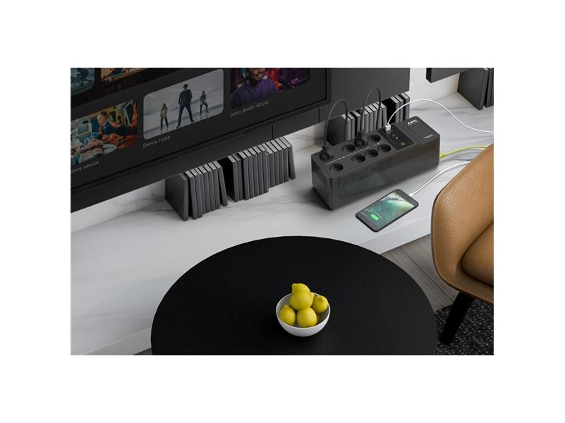 Összesen 8 kimenet: 6 akkumulátoros háttérellátást biztosító csatlakozó túlfeszültség elleni védelemmel és 2 túlfeszültségvédelmi csatlakozó