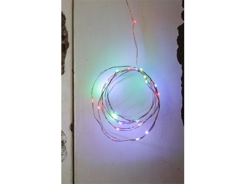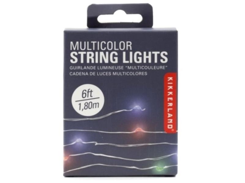 A Kikkerland huzal jellegű réz/piros/zöld/kék fényfüzér leírása: Rakj csodás fényeket ahová csak szeretnél ezzel az 1,8 m-es rézhuzalos fényfüzérrel, amely 20 színes LED égőt tartalmaz.