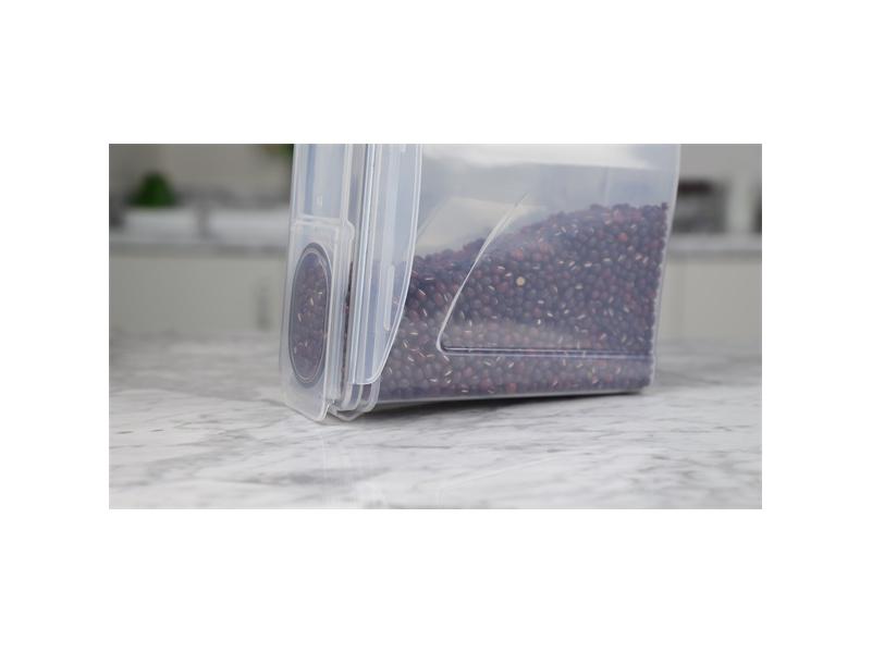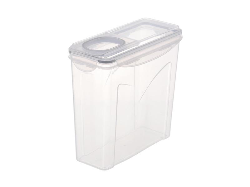 Élelmiszertartó doboz, magvakhoz, reggelizőpehelyhez, müzlihez. Adagoló nyílással.