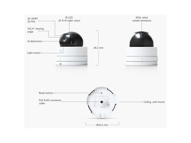 Az Ubiquiti UniFi UVC-G5-Dome-Ultra UniFi beltéri fehér 4 MP 2K IP kamera leírása: