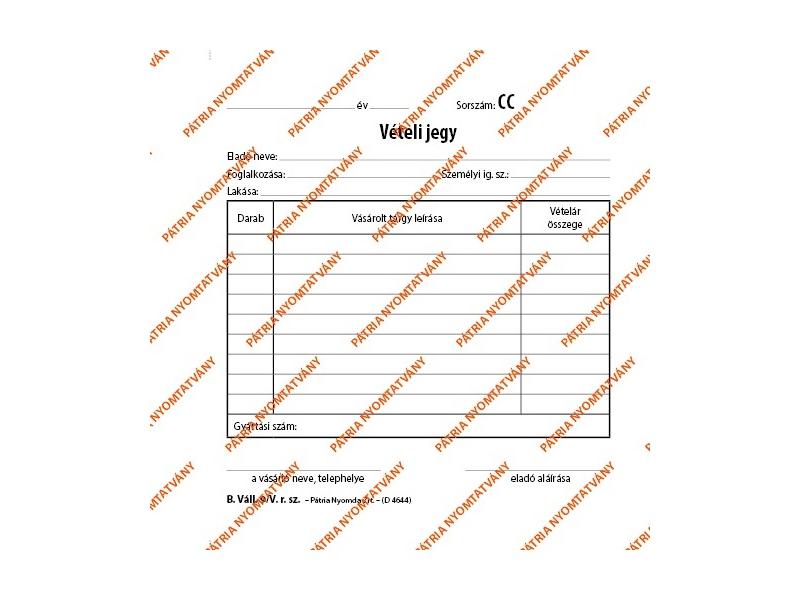 A B.VALL.9/V 140x140mm 50x2lapos "Vételi jegy" nyomtatvány leírása: - Vételi jegy 50 x 2 lapos tömb