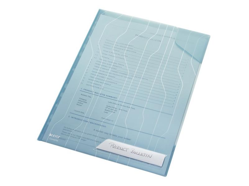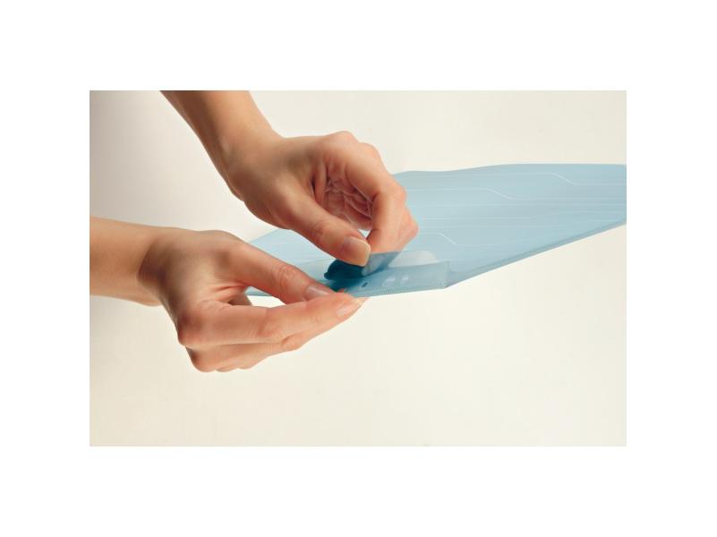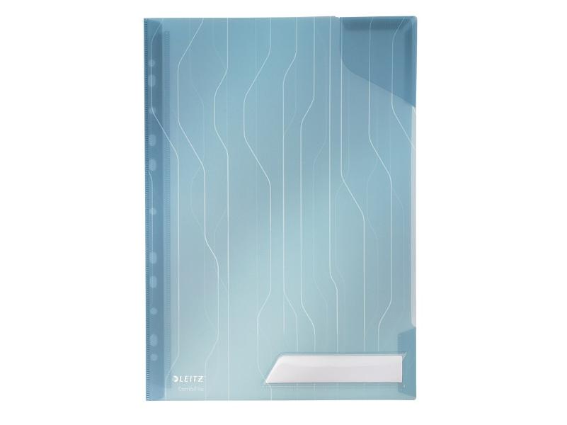 A Leitz CombiFile A4 5db kék lefűzhető genotherm leírása: Sokoldalú használatot biztosító termék - genotherm és tasak kombinációja, egyedülálló kihajtható lefűzőrésszel. A jobb felső sarok füles kialakítása óvja a dokumentumokat a kicsúszástól. PP alapanyag, tetszetős, dombornyomott mintázat.