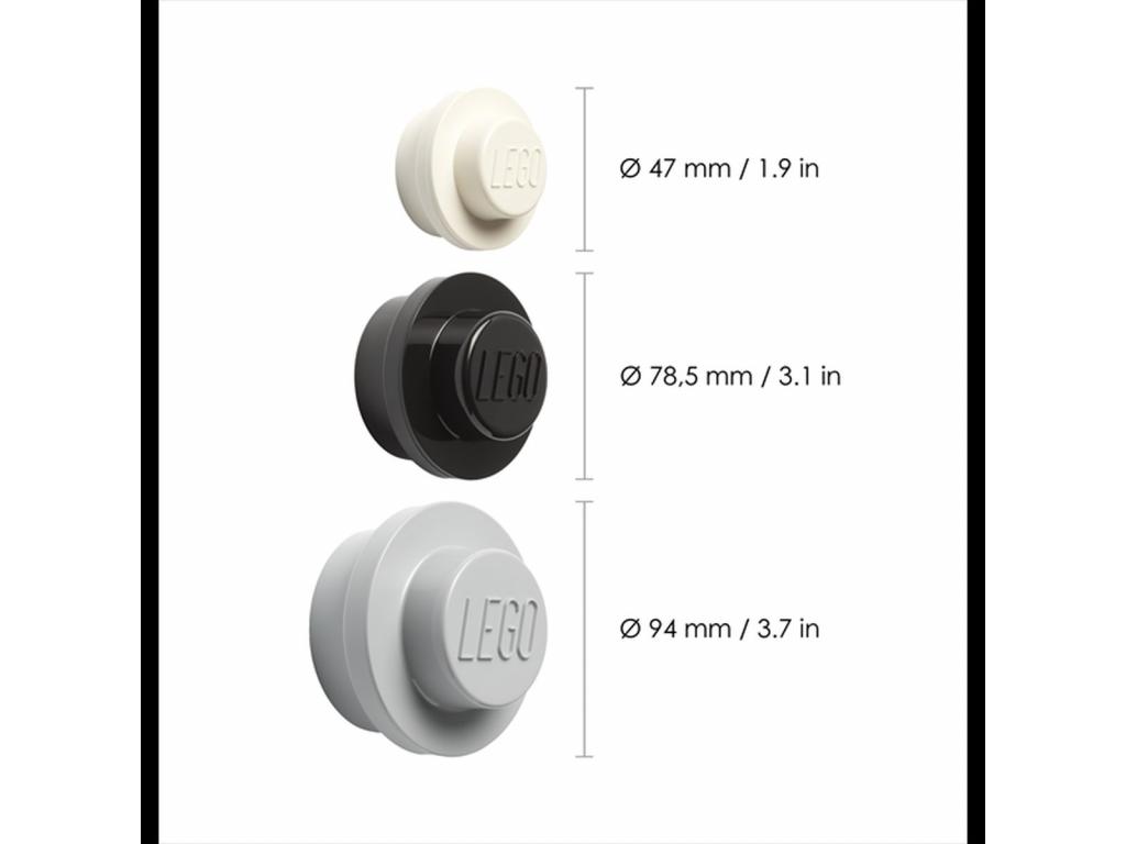 A LEGO Fali akasztó szett, fekete, fehér, szürke leírása: A LEGO rajongók boldogan egészítik ki szobájukat ezzel a fekete-fehér-szürke fali akasztó készlettel, amely 3 darab klasszikus LEGO "bütyök" formájú fali akasztót tartalmaz.