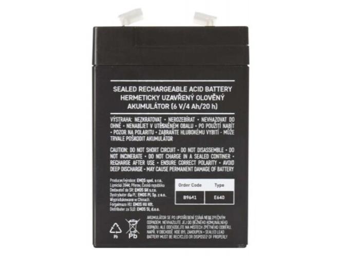 Az EMOS ólom-savas akkumulátor a GT6-4 P2307 lámpához leírása: