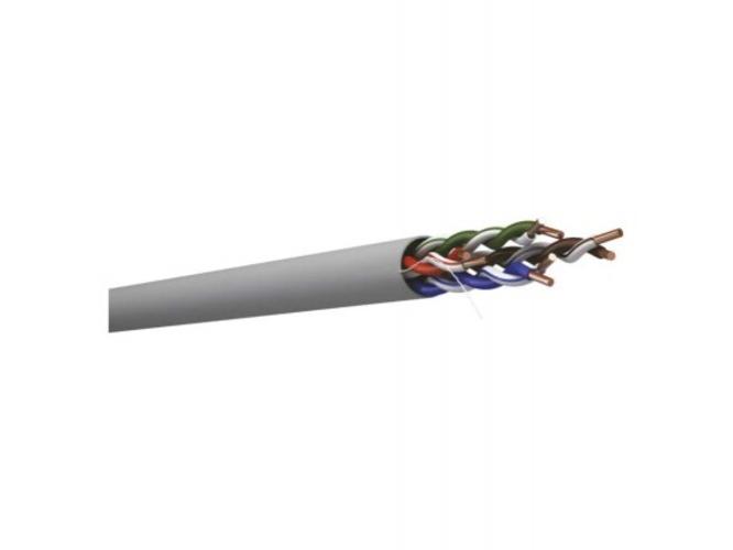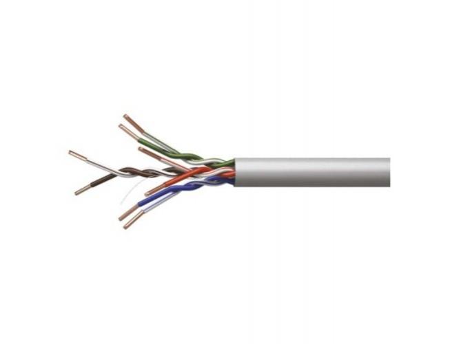 Nem árnyékolt, magas minőségű, vízszintes kábel, CAT5E kategóriában, PVC bevonattal. A vezetők magja nem újrahasznosított rézből készült. A kábel megfelel a műszaki cikk-jogszabályoknak.