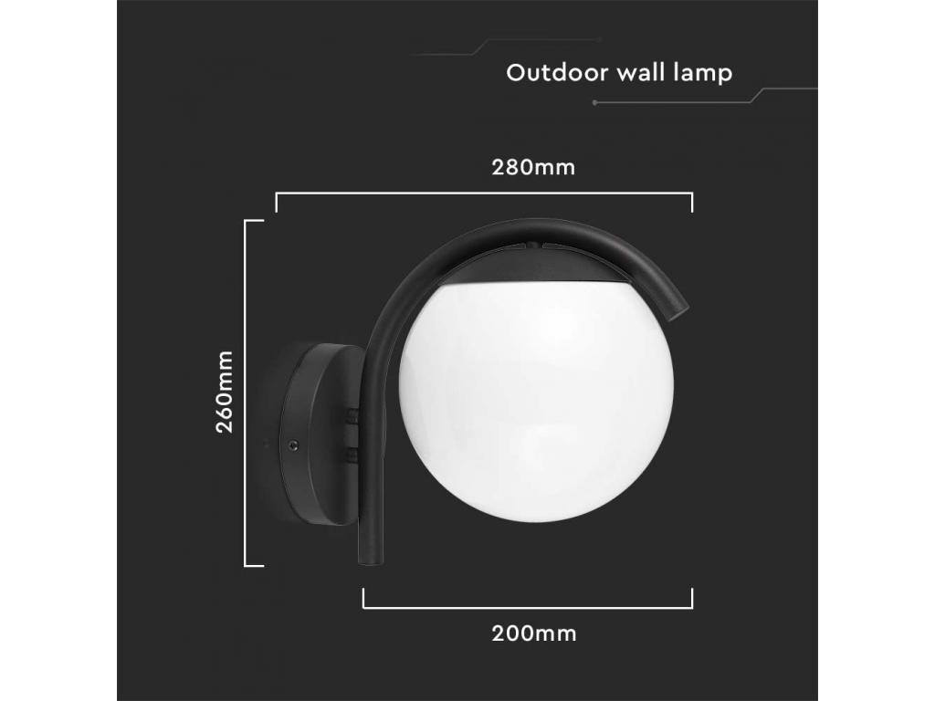 VT-1150 E27 Fali Lámpafoglalat Opál Pc Matt Fekete Testtel