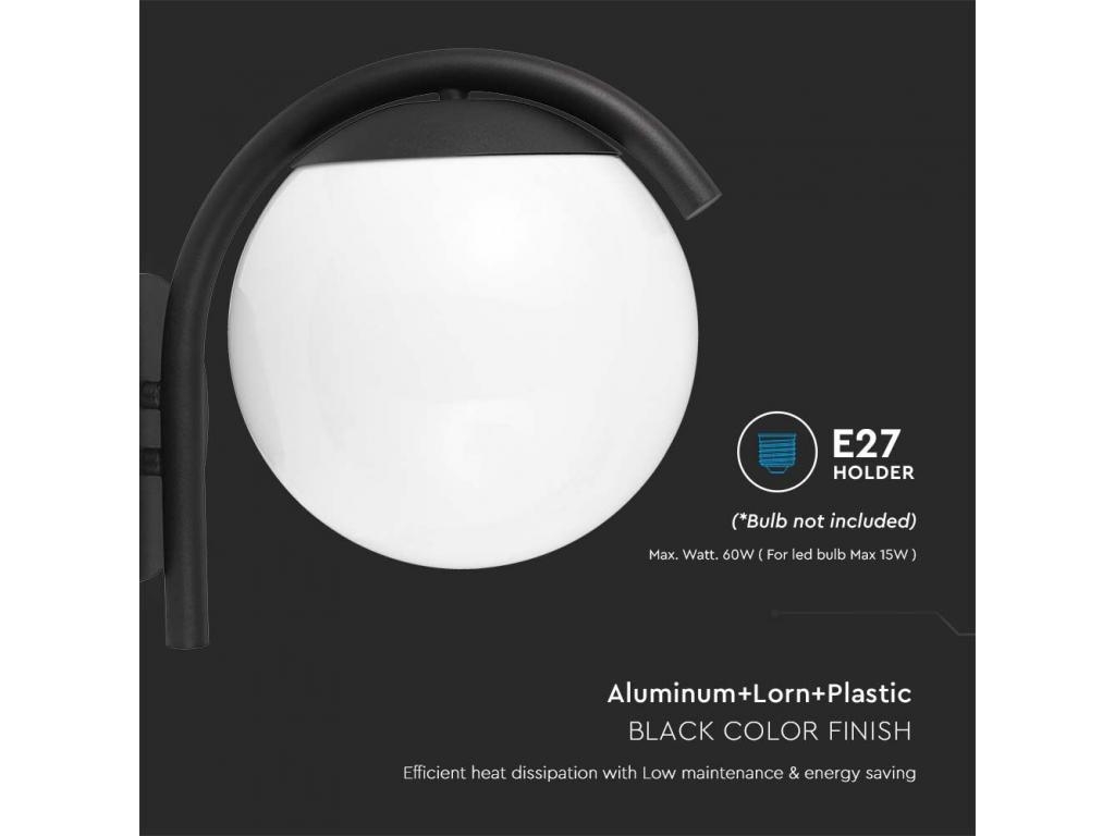 A VT-1150 E27 Fali Lámpafoglalat Opál Pc Matt Fekete Testtel leírása: