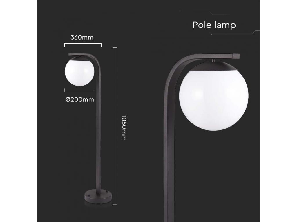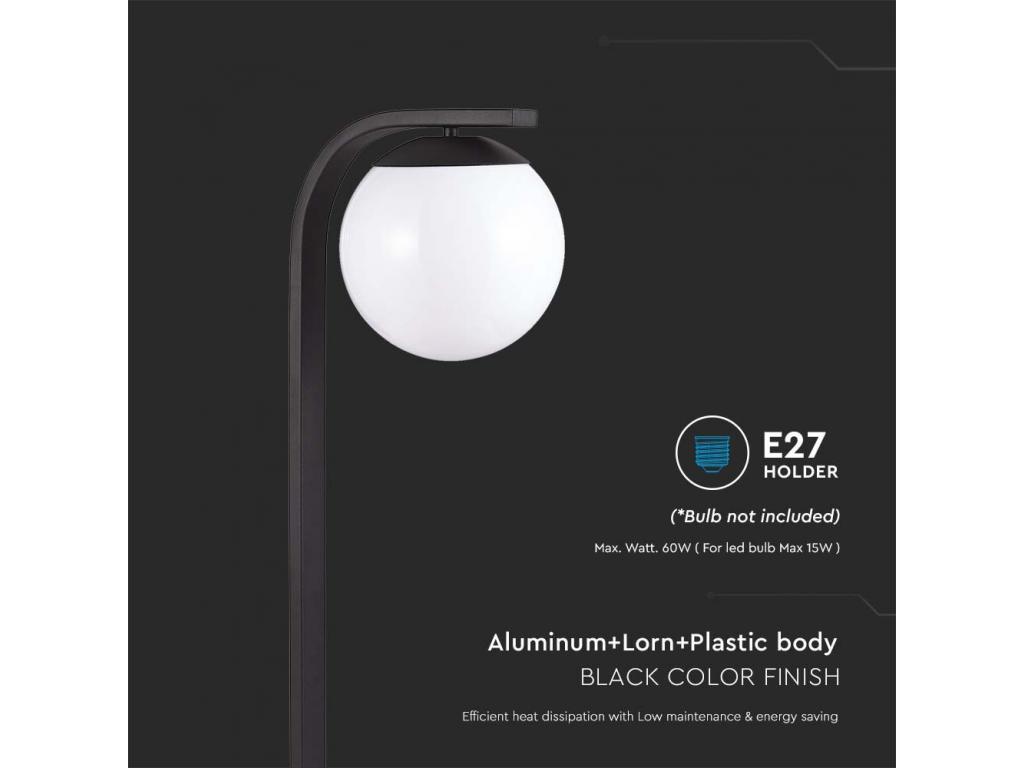 A VT-1157 E27 Oszloplámpa Foglalat Opál Pc Matt Fekete Testtel leírása: