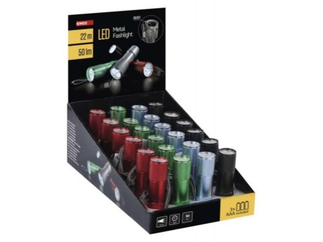 EMOS LED zseblámpa 50lm 3xAAA 24db-os kijelző doboz