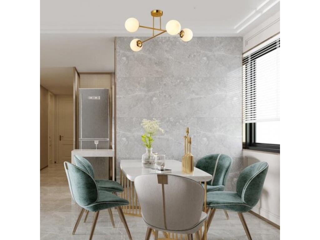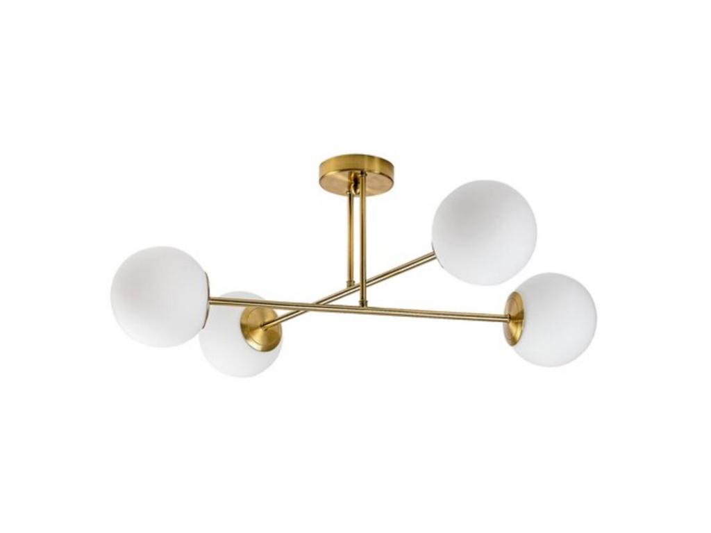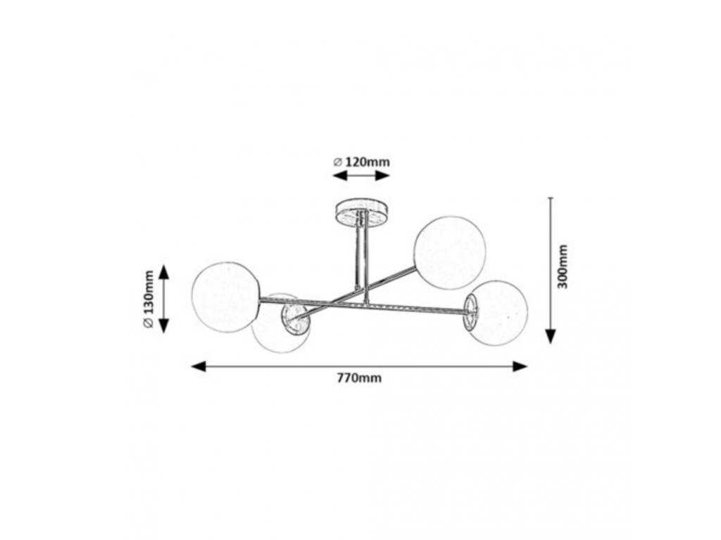 Az üde és elegáns megjelenésű, modern stílusú Kiara négyes mennyezeti lámpa remek választás a nappaliba vagy a hálószobába. A fémből készült, aranyszínű lámpatestet fehér üvegbúrák egészítik ki, és a lámpa kisméretű, kerek dísztalp segítségével rögzíthető a mennyezetre. A gömb formájú lámpafejek a dísztalphoz rögzített, vízszintes tartórudak végein helyezkednek el. A Kiara négy darab, egyenként legfeljebb 35 W teljesítményű, G45-ös fényforrással használható, a foglalatok típusa E27. Ízlésünktől és a felszerelés helyétől függően ehhez a modellhez választhatunk meleg vagy természetes fehér fényű izzókat. Ha a hálószobában helyezzük el, érdemes meleg fehér fényű fényforrásokkal működtetni, hiszen ez a típusú fény otthonos, meghitt hangulatot áraszt, pihenteti a szemet, és segít ellazulni. A Kiara mennyezeti lámpa szélessége 770 mm, mennyezettől mért távolsága 300 mm, egy-egy búra átmérője 130 mm, a lámpa beépítési átmérője 120 mm. Ezt a modellt fényforrások nélkül szállítjuk.