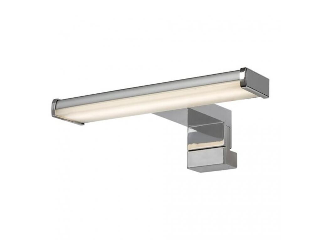 A Levon fürdőszobai fali lámpa a mosdó feletti tükör fölé szerelve praktikus és helytakarékos világítási megoldást kínál bármely modern fürdőbe. A teljes egészében műanyagból készült, szögletes, krómszínű modellt fehér búra egészíti ki, és szögletes, krómszínű dísztalp segítségével rögzíthető a falra. A Levon az E energiaosztályba tartozó beépített LED fényforrással rendelkezik, amelynek teljesítménye 4 W, fényereje búrával 450 lumen, búra nélkül 520 lumen, élettartama pedig kiemelkedő: 30 000 óra! A 4000 K színhőmérsékletű fényforrás természetes fehér fényt sugároz, amelynek segítségével tiszta, modern hatást érhetünk el a fürdőben. A tükörmegvilágító lámpa IP44-es védettsége garantálja, hogy ez a modell 1 mm-nél nagyobb szilárd tárgyak behatolása ellen, valamint bármilyen irányból fröccsenő víz ellen védett. A Levon fürdőszobai fali lámpa méretei a következők: szélessége 200 mm, magassága 55 mm, faltól mért távolsága 130 mm.