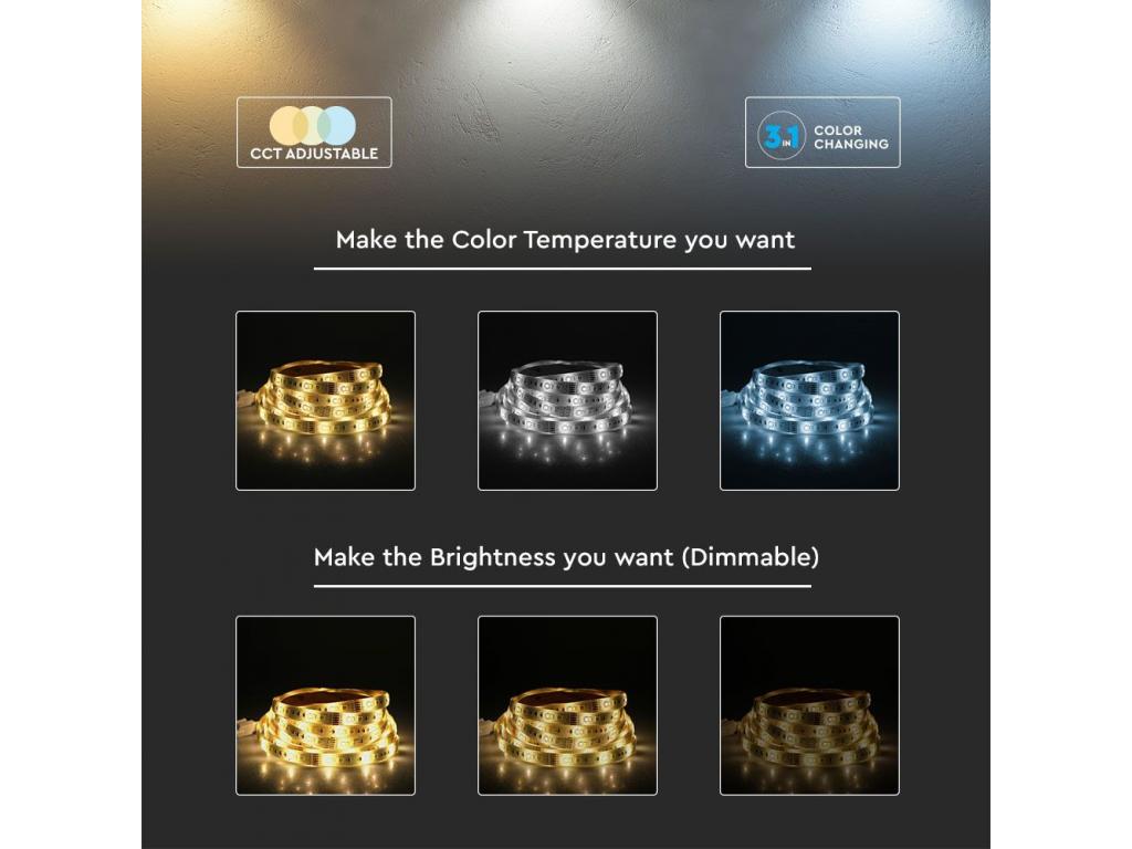 A VT-5050 60 24W/M LED Szalag CCT 3 Az 1-Ben + RGB IP65 24V leírása: