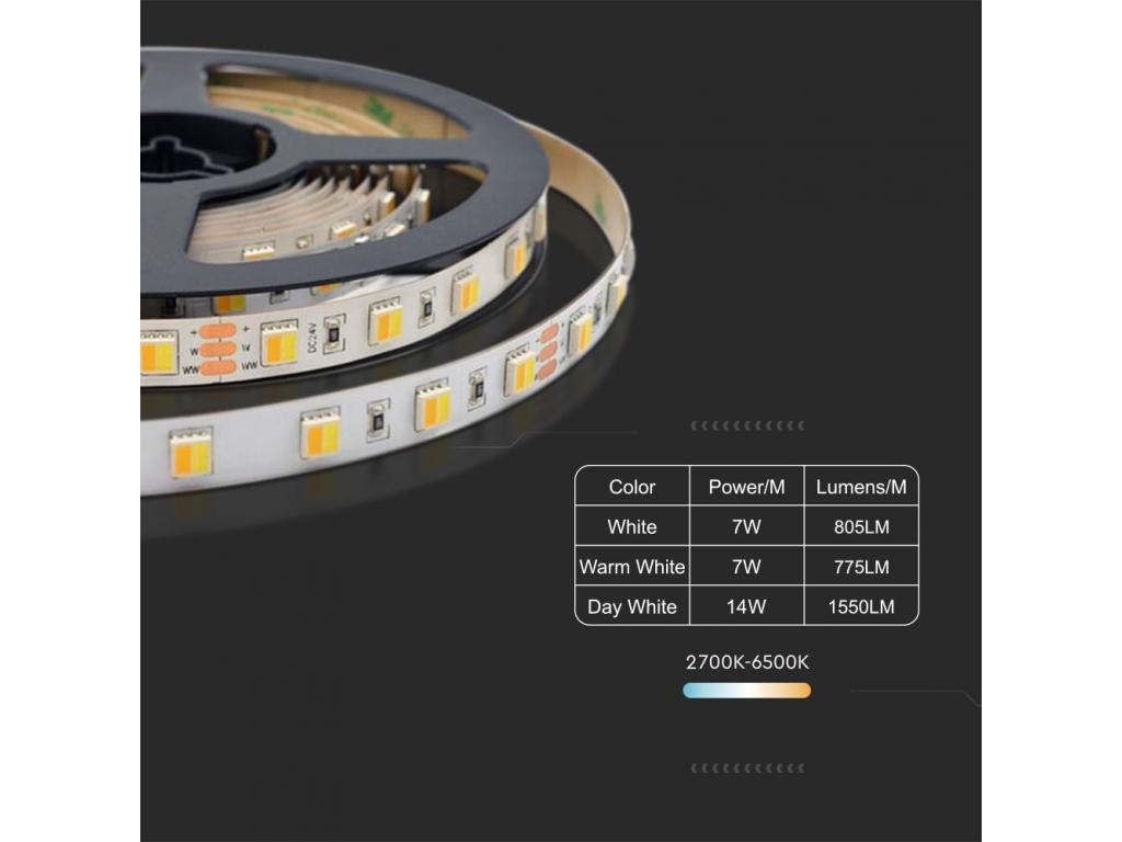 A VT-2835 120 14W/M LED Szalag CCT 3 Az 1-Ben IP20 24V leírása: