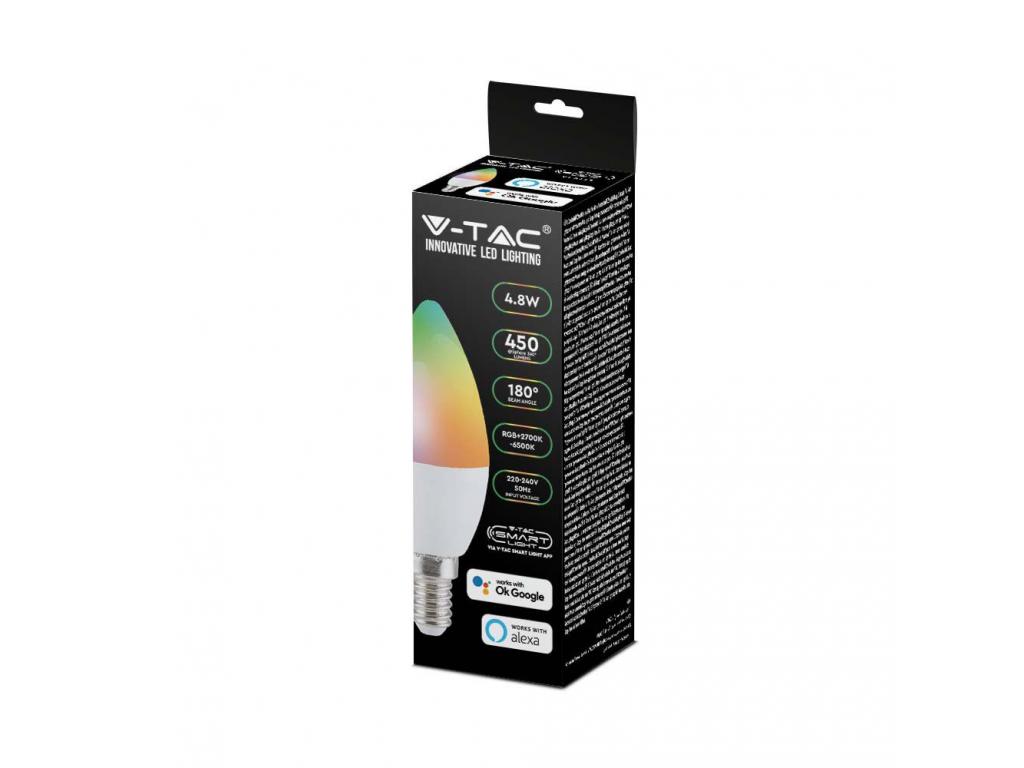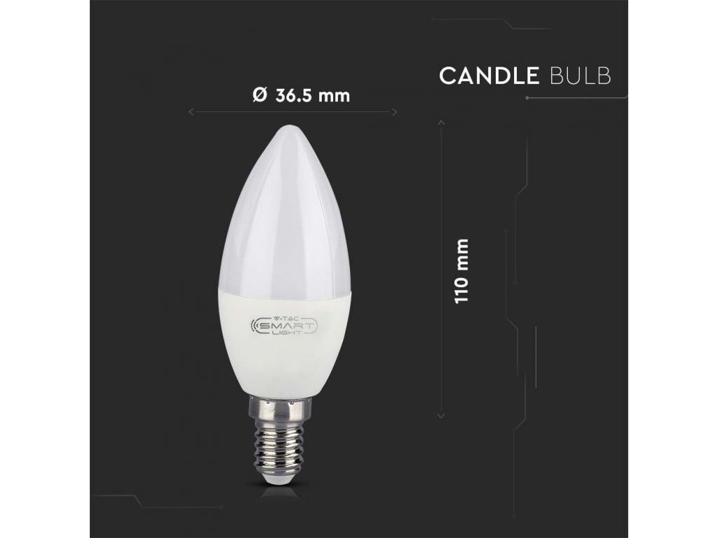 VT-5114 4,8 W-Os Gyertyaizzó, Kompatibilis Az Amazon Alexa És A Google Home RGB+Ww-Cw E14 Izzókkal