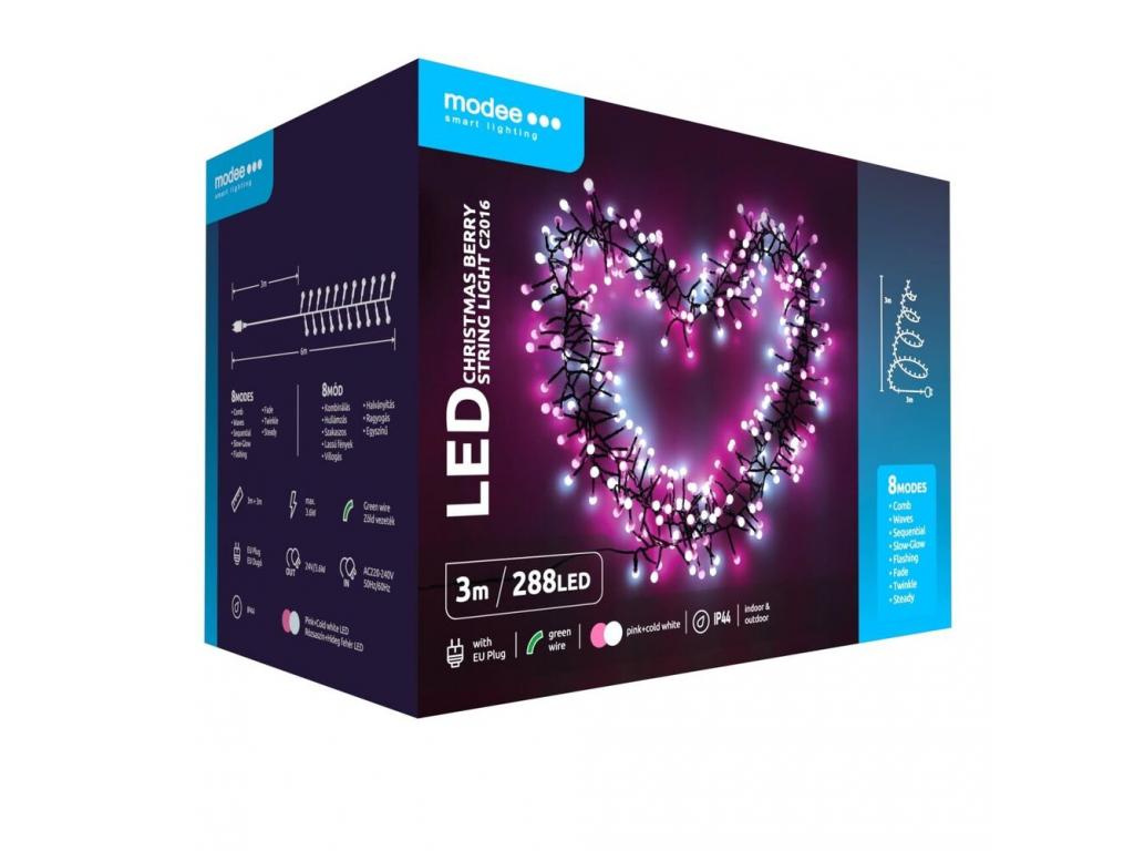 Modee Karácsonyi LED Füzér Berry Plastic Adapteres C2016 (288LED/3m) pink+cold
