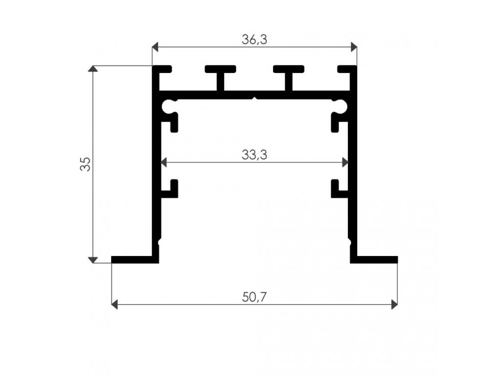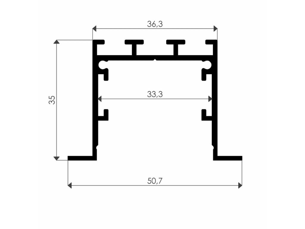 A 35 mm-es magasságával és 36,3 mm-es szélességével a 440 VL masszív és modern dizájnt kínál, amely különböző süllyesztett világítási alkalmazásokhoz megfelelő. A 6100 mm-es hossza lehetővé teszi a zökkenőmentes integrációt és a testreszabást a specifikus világítási igények alapján. Kifejezetten süllyesztett használatra tervezett, a 440 VL ideális a letisztult és hatékony világítási környezet megteremtéséhez. 27,00 mm széles LED szalagokkal való kompatibilitása rugalmasságot biztosít a világítási tervezésben, így alkalmas különféle lakossági és kereskedelmi alkalmazásokhoz.
