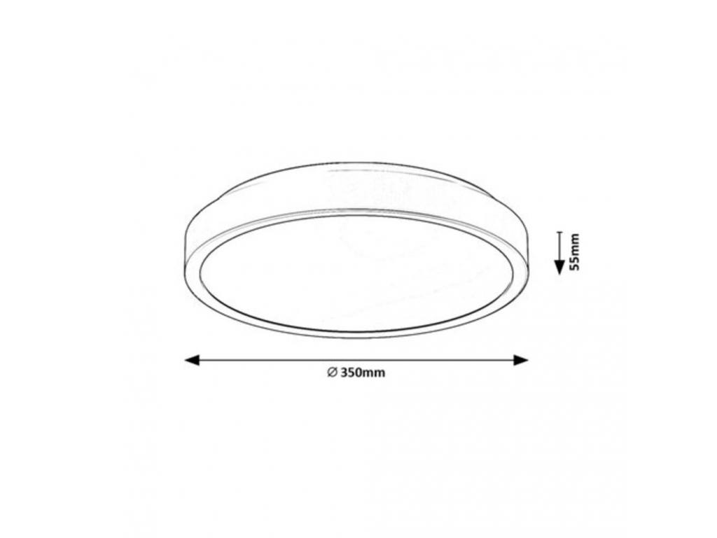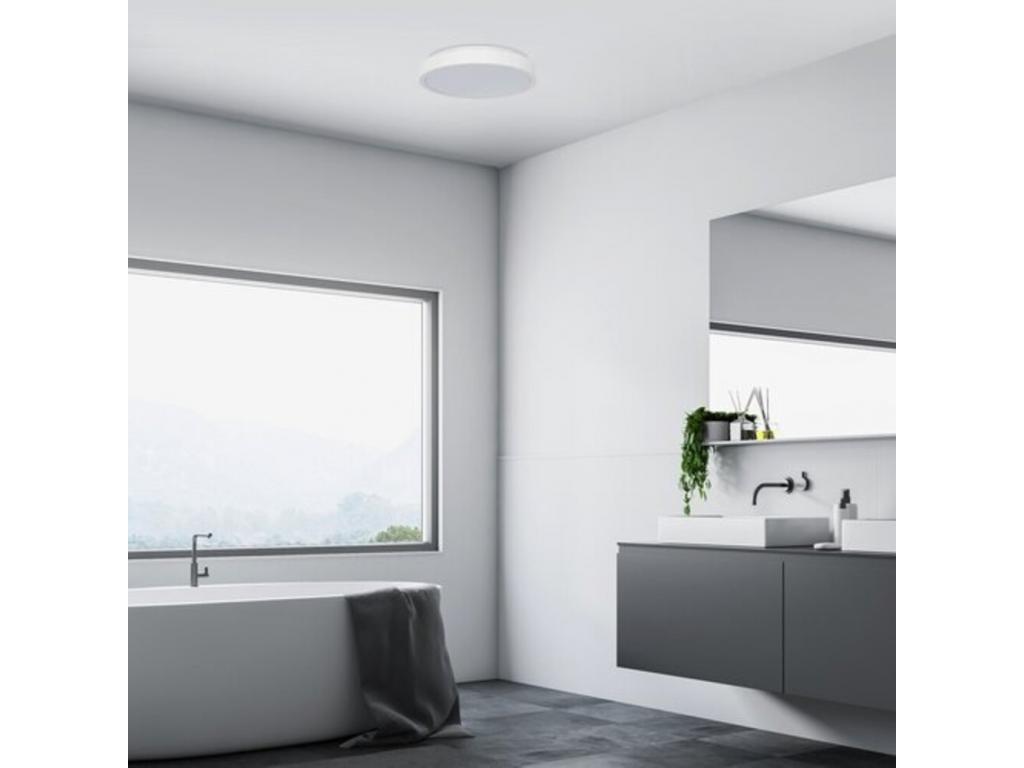 A minimál stílusú, ráépíthető Samira fürdőszobai mennyezeti lámpa praktikus és helytakarékos megoldást kínál fürdőszobánk megvilágítására. A háttérfény funkcióval ellátott kerek modell teljes egészében műanyagból, fehér színben készül. Nagy fényerejének köszönhetően ezzel a lámpával hatékonyan bevilágíthatunk egy tágasabb fürdőszobát is. A Samira a G energiaosztályba tartozó beépített LED fényforrással rendelkezik, amelynek teljesítménye 36 W, fényereje búrával 2930 lumen, búra nélkül 3600 lumen. A 4000 K színhőmérsékletű fényforrás élettartama 25 000 óra. A természetes fehér fénnyel világító mennyezeti lámpa segítségével tiszta, modern hatást érhetünk el a fürdőben. A Samira IP44-es védettsége garantálja, hogy ez a modell 1 mm-nél nagyobb szilárd tárgyak behatolása ellen, valamint bármilyen irányból fröccsenő víz ellen védett. A mennyezeti lámpa átmérője 350 mm, mennyezettől mért távolsága 55 mm.