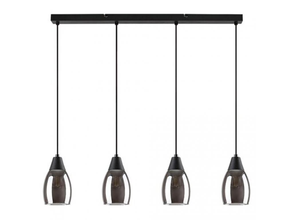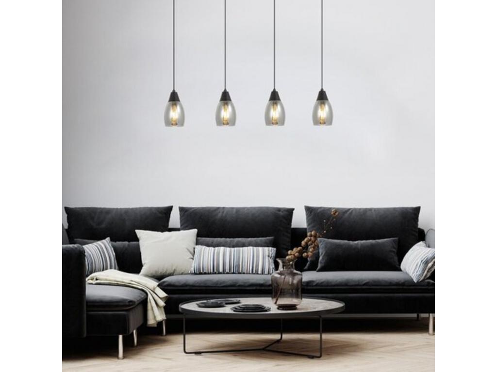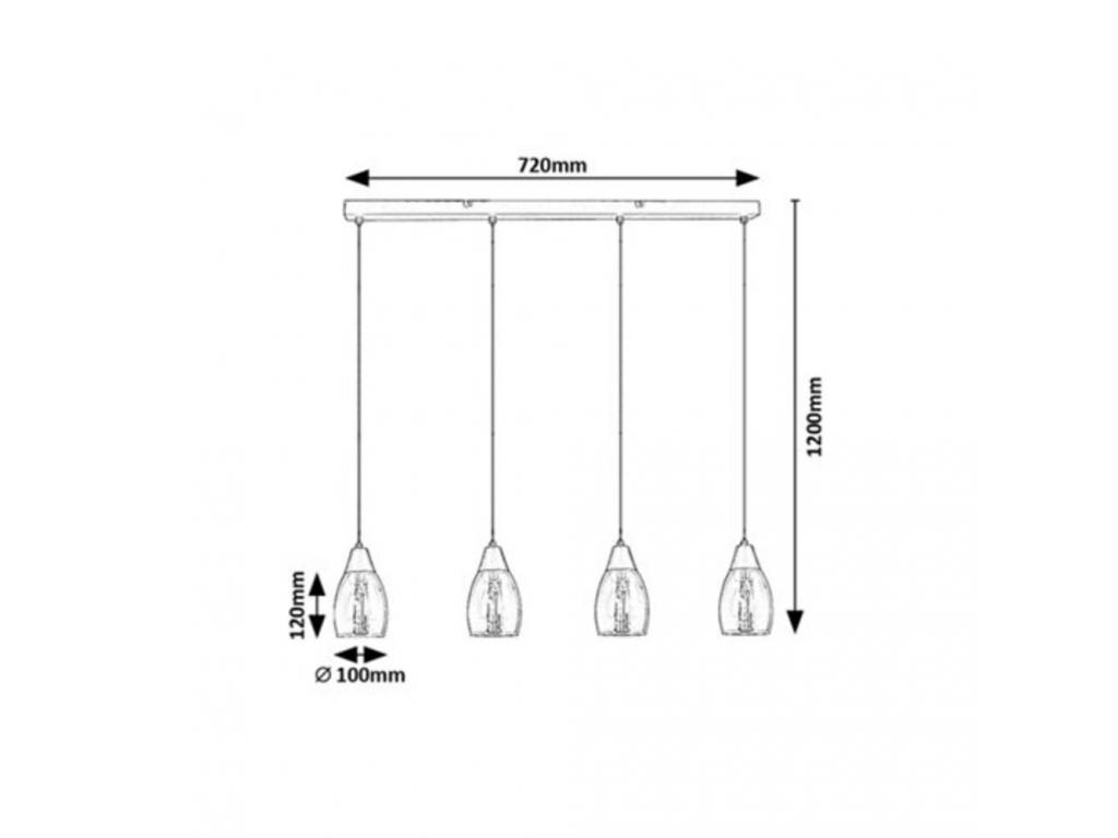 A visszafogott, harmonikus formatervezésű Ilmari négyes függeszték számos modern nappali berendezésének elegáns darabja lehet. A fémből készült fekete lámpát alul nyitott, lefelé enyhén szélesedő színezett üvegbúrák és hosszú, téglalap alakú, fekete dísztalp egészíti ki. Az azonos magasságban függő lámpafejek sorban egymás mellett helyezkednek el. Az Ilmari négy darab, egyenként legfeljebb 15 W teljesítményű fényforrással működtethető, a foglalatok típusa E27. Mivel a függesztéket elsősorban a nappaliba ajánljuk, természetes fehér fényű fényforrások használatát javasoljuk, amelyekkel modern, tiszta hatást érhetünk el. Mivel a színezett üvegbúrákon keresztül is jól érvényesülnek az izzók, a függeszték megjelenését még izgalmasabbá tehetjük, ha különleges formájú fényforrásokat választunk. A lámpa méretei a következők: szélessége 720 mm, egy-egy búra átmérője 100 mm, a lámpa belógása 1200 mm. Az Ilmari négyes függesztéket fényforrások nélkül szállítjuk.