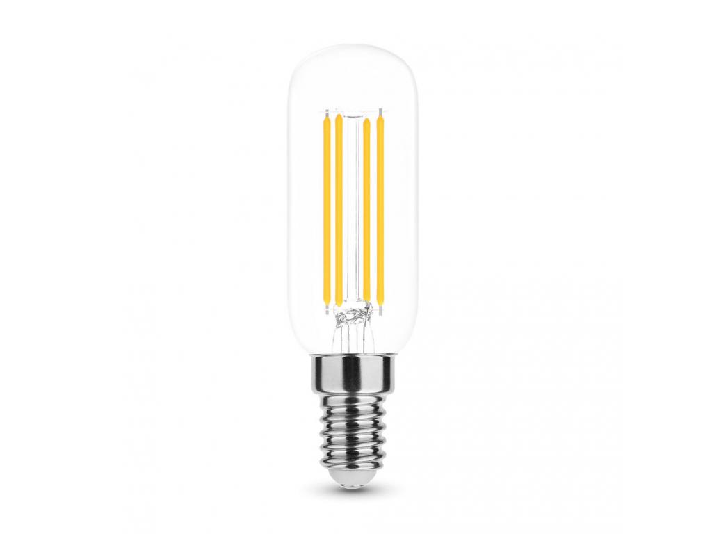 A Filament T25 egy speciális formavilág E14 foglalattal. Olyan helyekre javasoljuk, ahol nincs hely nagyobb fejátmérőnek, páraelszívőkhoz, varrógéphez és egyéb hasonló helyekre. A MODEE Smart Lighting ezt a terméket 4000K azaz neutrál fehér színhőmérséklettel gyártja, amit fürdőszobák, mellékhelyiségek, konyha és irodai felhasználásra ajánlunk. Szemben a 2700K-el a fénye fehéreb, így érzetre erősebbnek látja az emberi szem ezt a fényt. A fogyasztása azonban mindössze 3,5W. A technológiának köszönhetően 350 lumen fényerőt képes a 4W fogyasztásból előállítani, ami magas fényhasznosításnak számít.