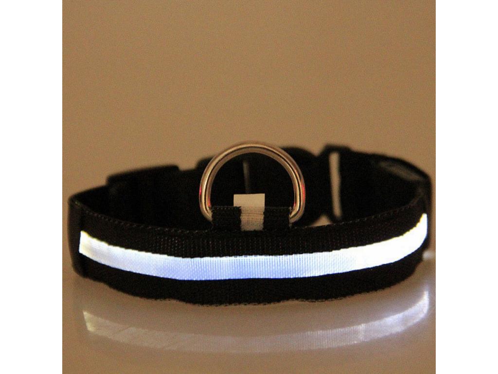 A LED-es kutyanyakörv , állítható , elemes , vízálló , 40cm , L-es , fehér-fekete leírása:
