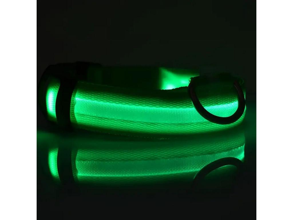 LED-es kutyanyakörv , állítható , elemes , vízálló , 30cm , S-es , zöld