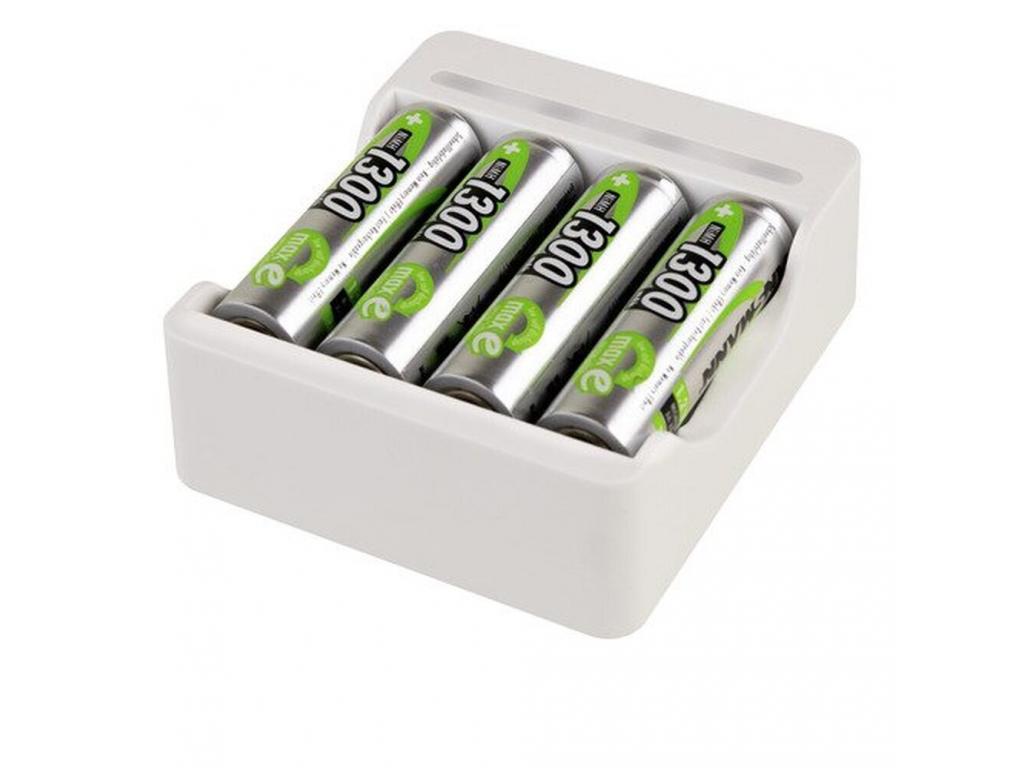 Töltő USB bemenettel 1-4 NiMH újratölthető AA vagy AAA méretű elemhez.