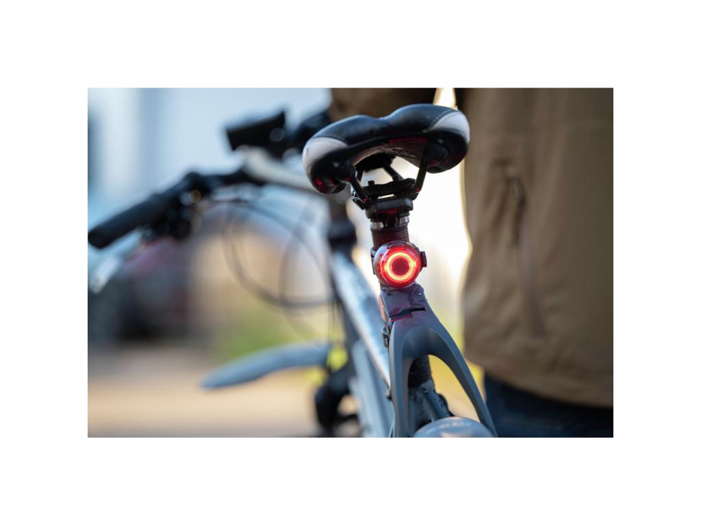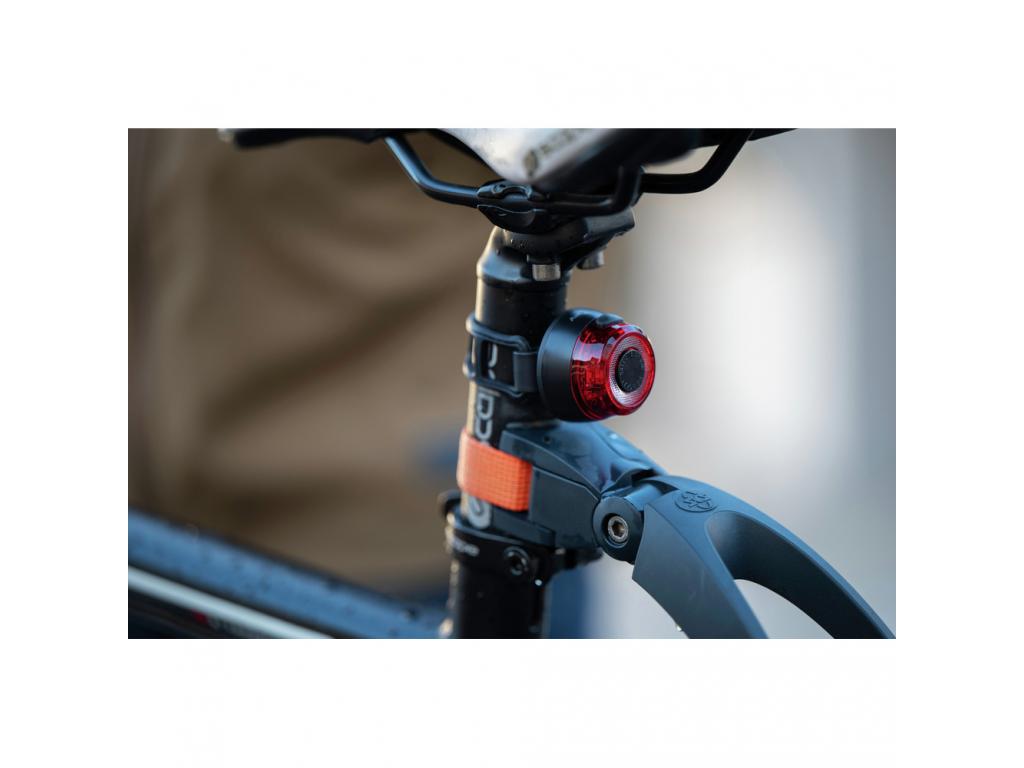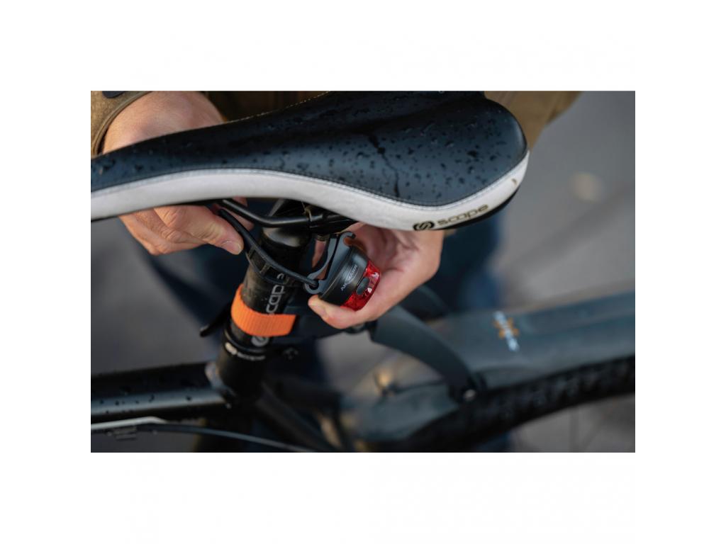 Biciklik világít LED hátsó lámpa, újratölthető, li-ion akkumulátorral, fröccsmentes, a német közutakon történő használatra jóváhagyva, univerzális tartóval.