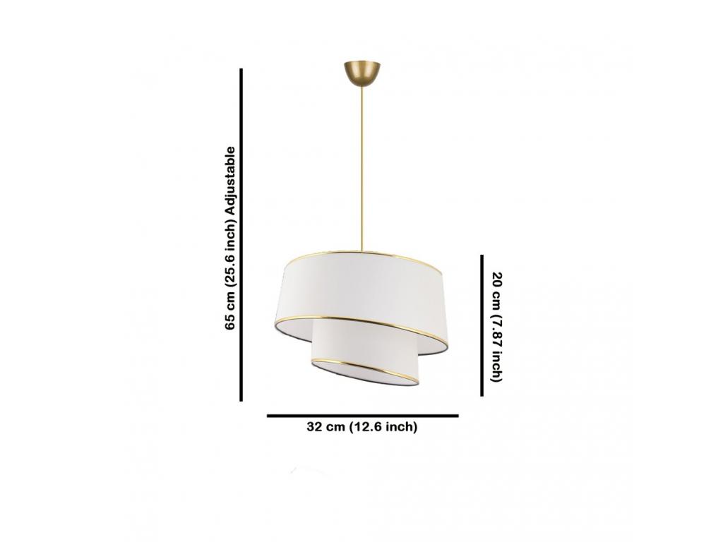 Opviq, 390FLH1840, Elegáns fém csillár szövet sapkával, fehér és arany, 70 cm magasság | CE tanúsítvánnyal rendelkező, E27-es al