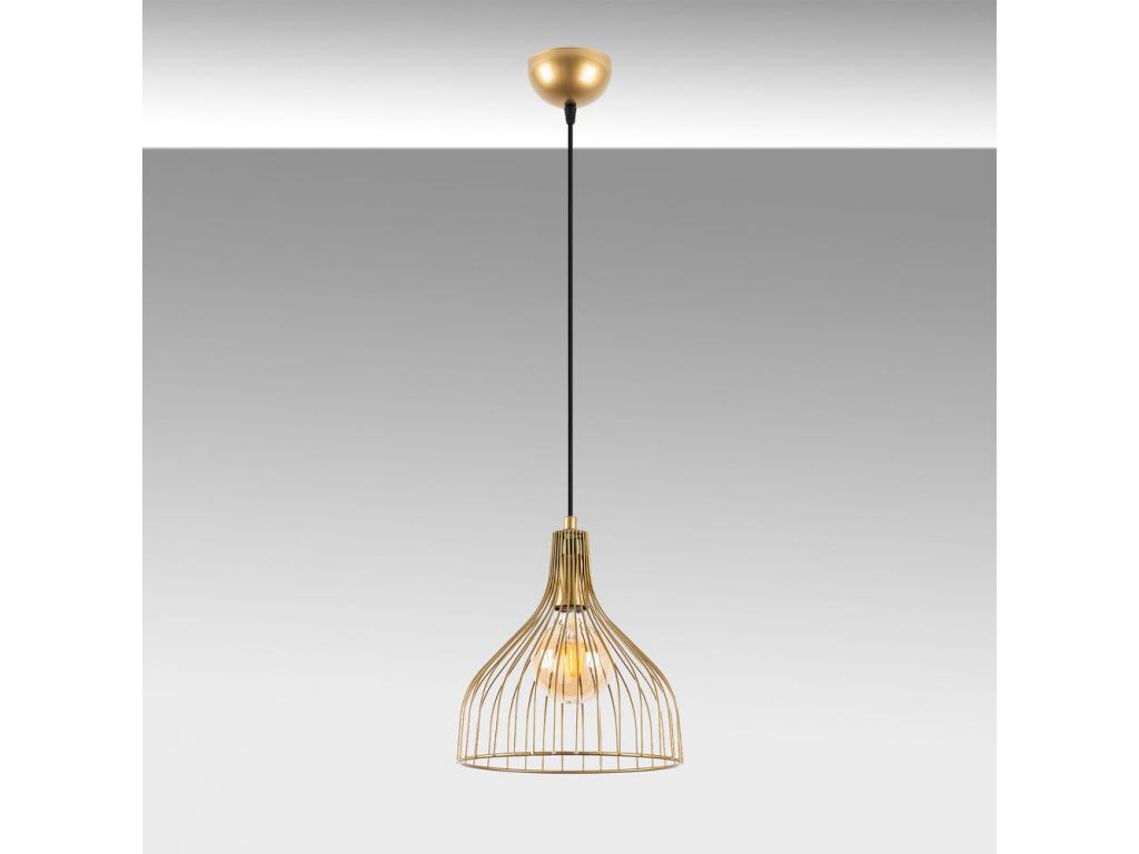 Elegáns fényes arany csillár, fém test, 25 x 25 x 123 cm | Állítható magasságú, E27 aljzat, IP20 | Tökéletes modern lakberendezé