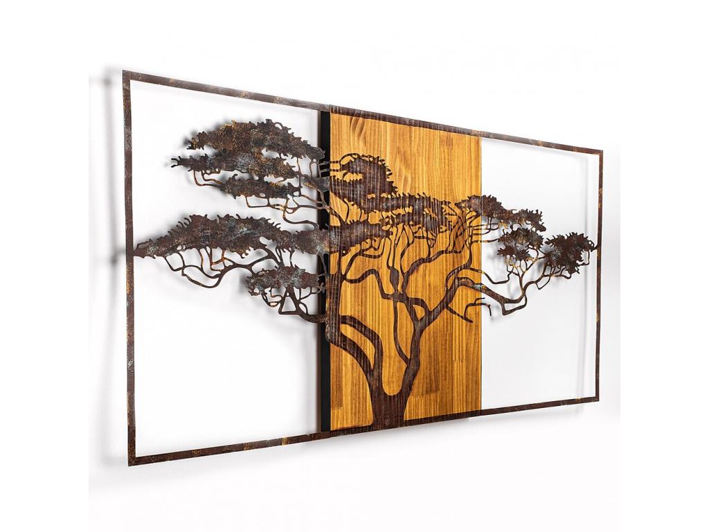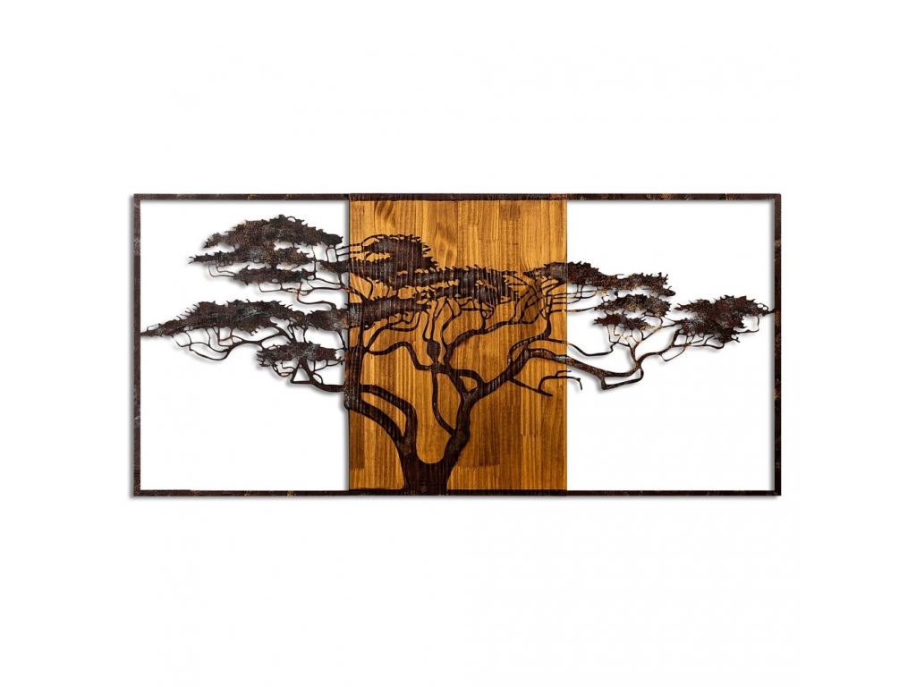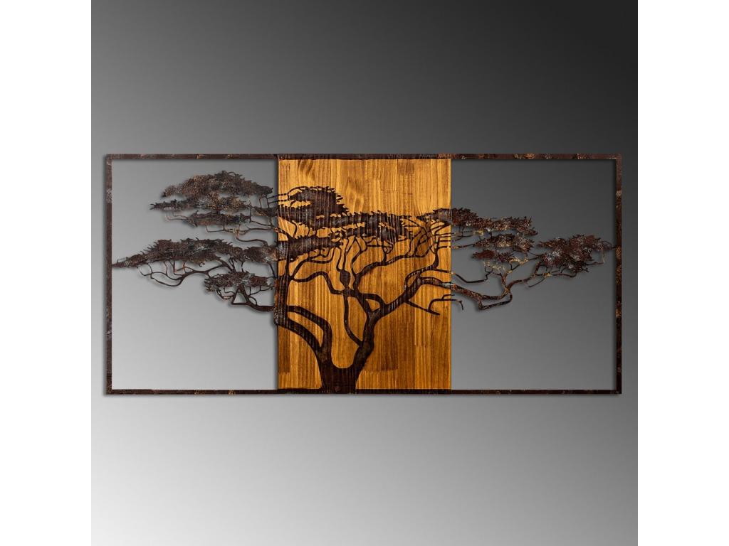 Kézzel festett dekoratív fa falkiegészítő, 147 x 70 x 3 cm | 100% tömör fa (3 cm) és fém (1,5 mm) | Egyedi dizájn természetes va