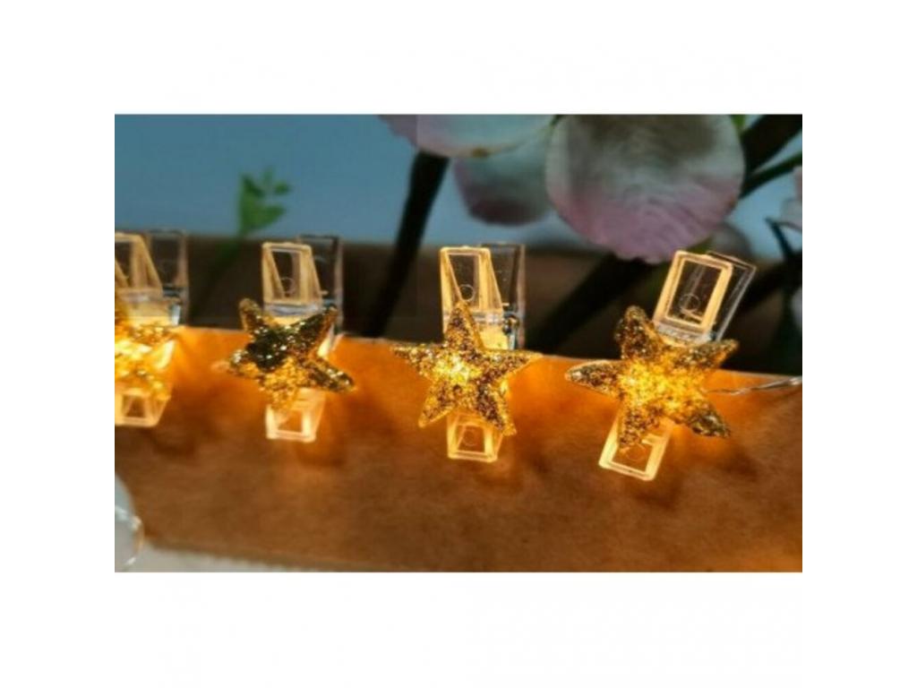 Led fényfüzér , beltéri , meleg fehér ,elemes , csillag, 10 LED , IP20 , Modee