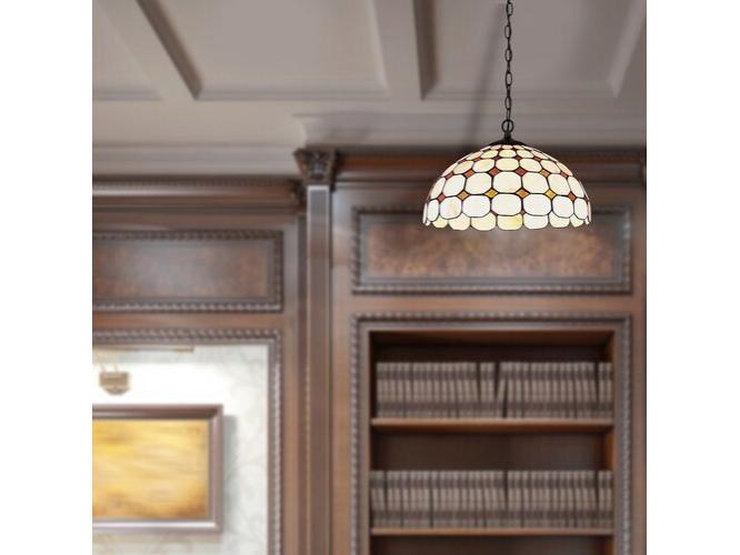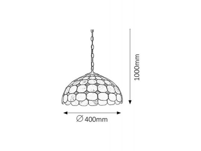 A Tiffany lámpabúrás csillár, egyedi, kézzel készült termék, amely remek választás, ha a klasszikus elegancia mellett egyedülálló, különleges darabot keres. Technikai adatai: Tiffany lámpabúrás függeszték 2 db foglalattal. 100 cm lelógású, 40 cm átmérőjű, bronz színű fémből készített lámpatest színes Tiffany-stílusú üveg lámpabúrával, IP20-as védelemmel. A lámpatest E-27-es foglalatú, max. 2x 60W teljesítményű halogén vagy energiatakarékos fényforrásokkal használható.