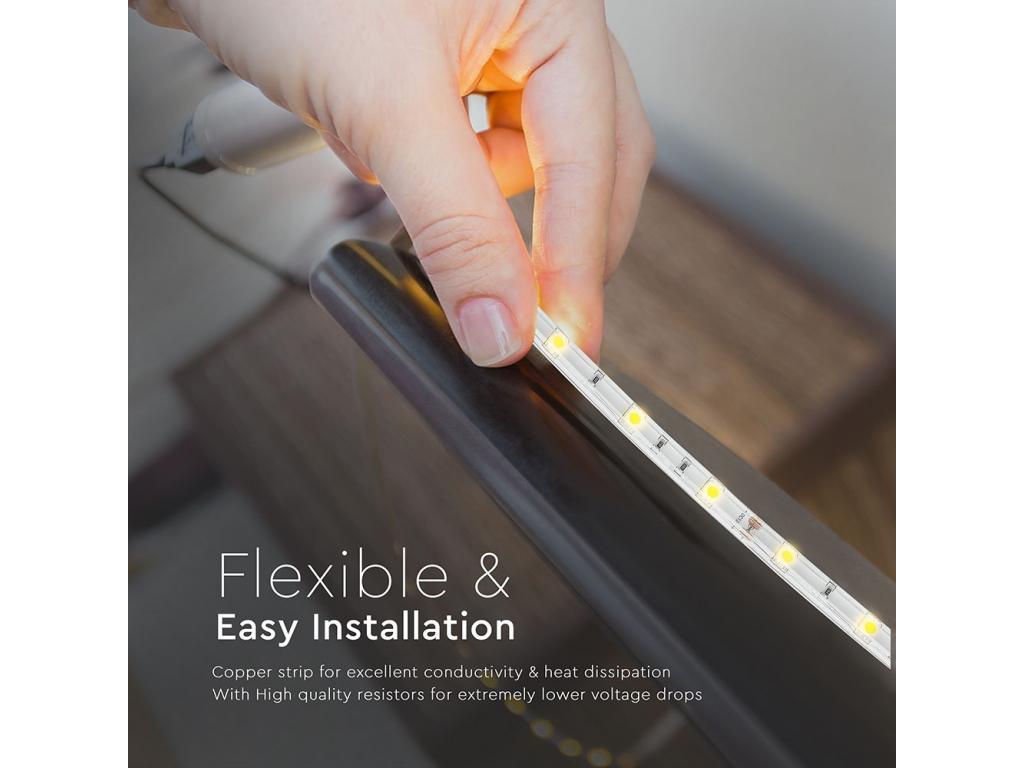 Alakítsa át terét a nagy teljesítményű VT-5050-30 LED-szalaggal. Ez a sokoldalú, 4,8 W/m-es szalag ragyogó megvilágítást biztosít 6000 K színhőmérséklettel, így biztosítva, hogy a terület jól megvilágított és hívogató legyen. Robusztus IP65 besorolással rendelkezik, így beltéri és kültéri használatra egyaránt alkalmas, míg a hosszú, 20 000 órás élettartam tartósságot és alacsony karbantartási igényt biztosít. Méterenként 30 SMD LED-del lenyűgöző, 500 lumen/méter fényerőt produkál, kiváló fényerőt és 80%-os energiahatékonyságot kínálva. A szalag DC 12 V-on működik, és méterenként mindössze 0,4 A-t fogyaszt, így gazdaságos világítási megoldás. A 10 mm széles szalag könnyen telepíthető különféle elrendezésekben, és kialakítása lehetővé teszi több szalag összekapcsolását a nagyobb hosszúság érdekében. A 120°-os sugárzási szög széles lefedettséget biztosít, ideális kiegészítő világításhoz és kiállítási alkalmazásokhoz. A praktikus, 5 méteres tekercsben kicsomagolt VT-5050-30 minimális beállítási nehézségekkel készen áll arra, hogy megvilágítsa projektjeit. Bízzon a villódzásmentes teljesítményében, amely optimális vizuális kényelmet biztosít bármilyen környezetben. Ideális otthoni dekorációhoz, kiskereskedelmi kirakatokhoz vagy építészeti kiemelésekhez.