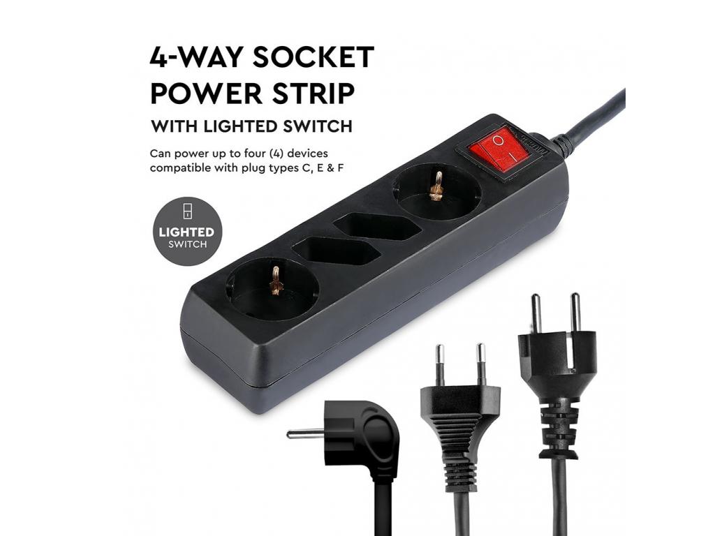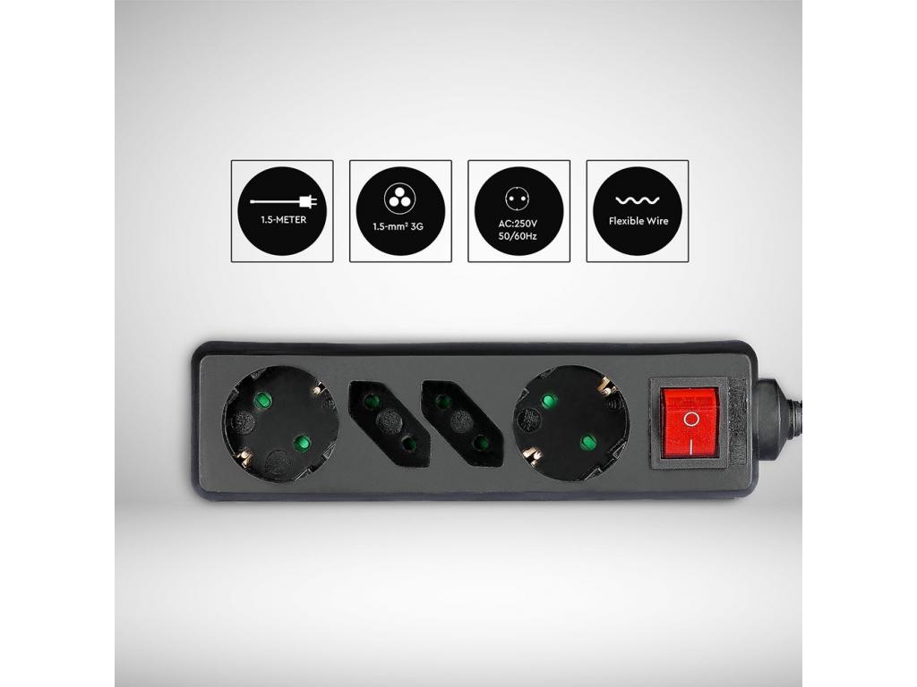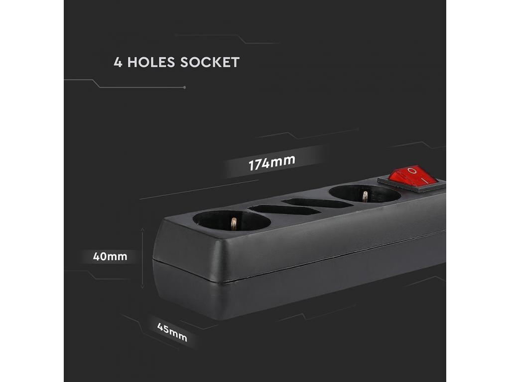 VT-1117-2 4 Lyukú Csatlakozóaljzat Kapcsolóval (3G1.5mm2 X1.5M) - Fekete