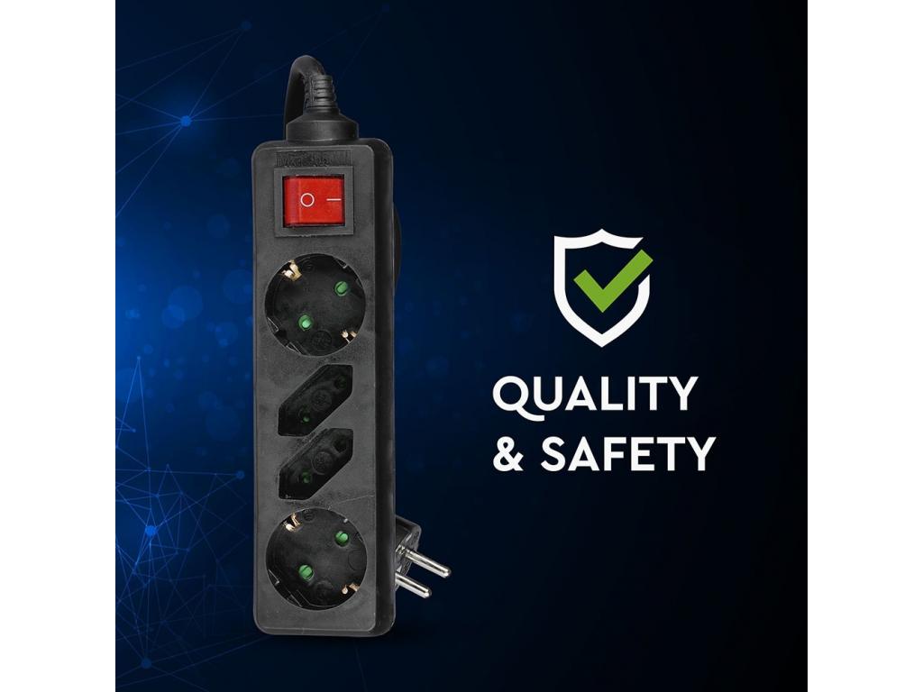 A VT-1117-2 4 Lyukú Csatlakozóaljzat Kapcsolóval (3G1.5mm2 X1.5M) - Fekete leírása: