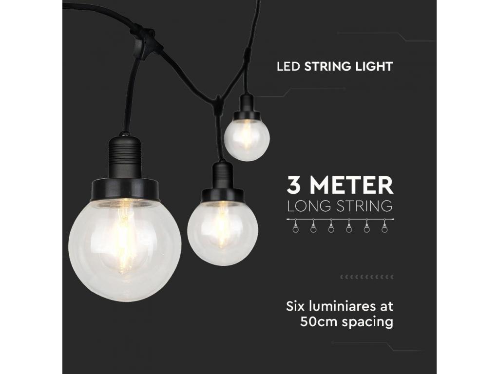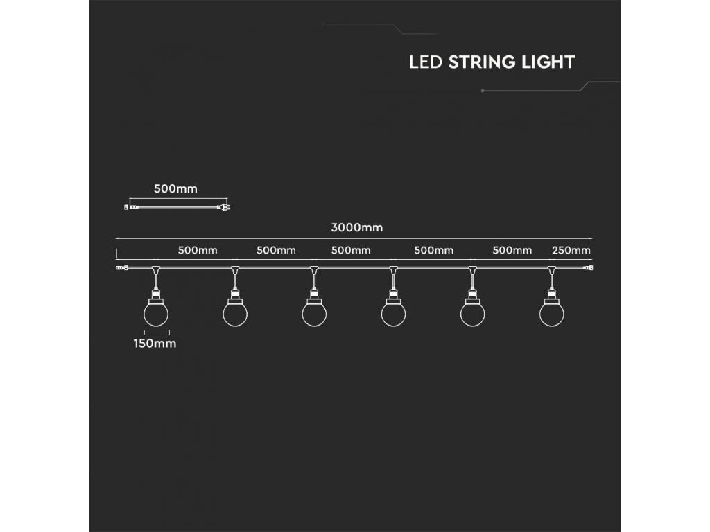 VT-720S LED-Es Fényfüzér (3M) Izzóval (6 Izzó) - Matt Fekete IP65