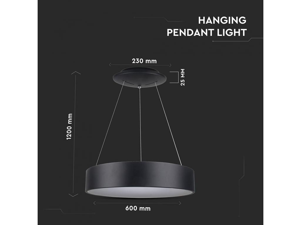 VT-32-1D 30W LED Felületre Szerelhető, Sima Függeszték, 3000K, Fekete, Szabályozható Fényerővel