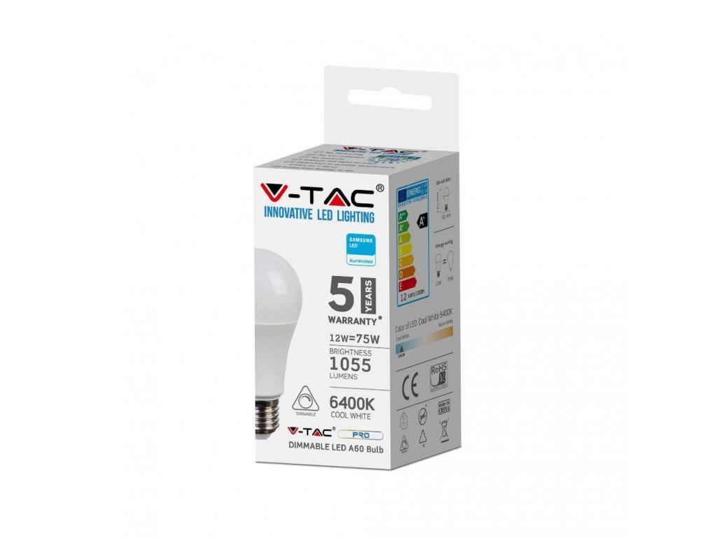 VT-262D 12W A60 LED Műanyag Izzó Samsung Chip 6400K E27 Szabályozható Fényerő