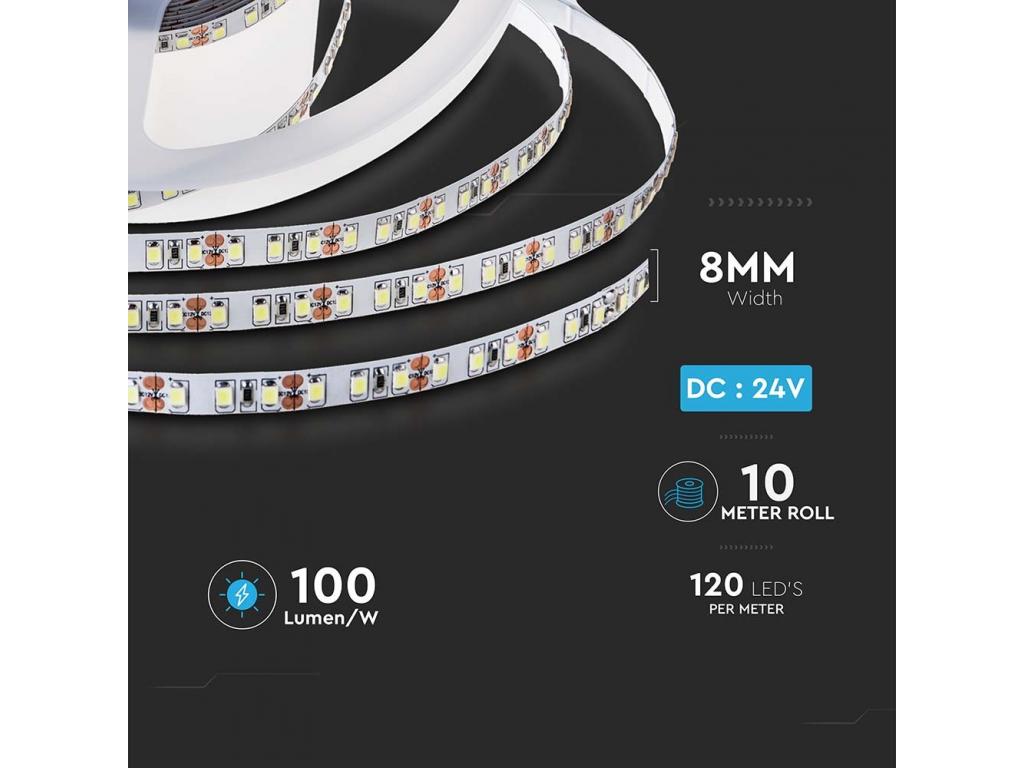 VT-2835 120 8W/M LED Szalag 4000K IP20 24V Dupla Nyák-ba (10M/Tekercs) (Ár Méterenként)