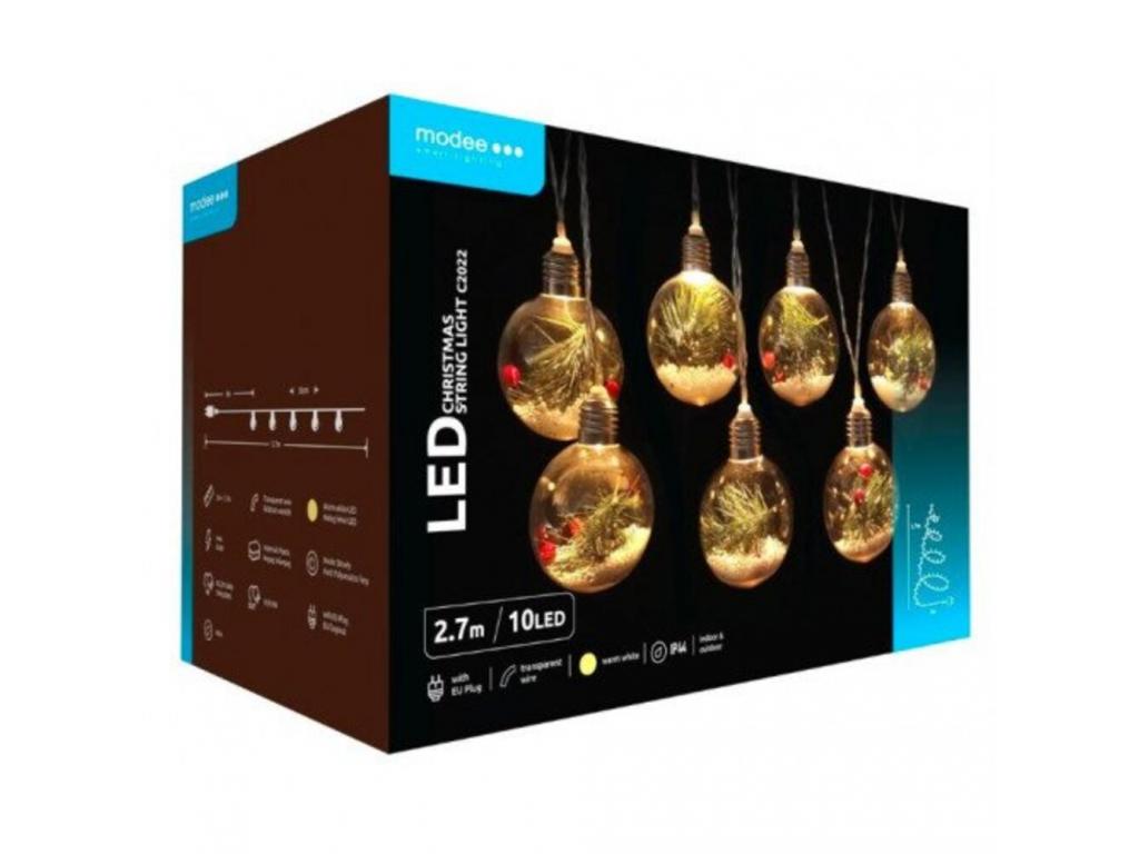 Led fényfüzér , beltéri , meleg fehér, gömb , fenyőág, 2,7m , 10 LED , IP44 , Modee