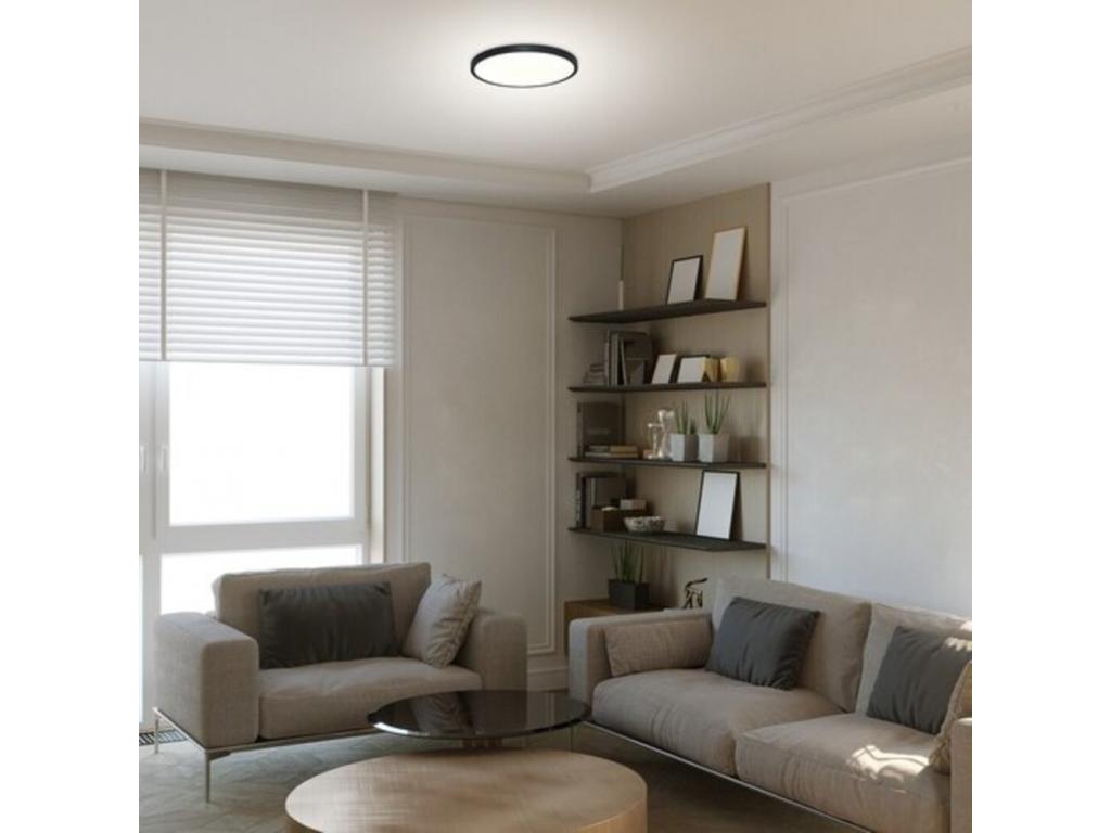 A műszaki stílusú Paulos mennyezeti lámpa praktikus és helytakarékos megoldást kínál a nappali, a hálószoba vagy a dolgozószoba megvilágítására. A fekete színben, teljes egészében műanyagból készült, kerek modellt fehér búra egészíti ki. Letisztult formatervezésének köszönhetően a Paulos diszkréten belesimul a szoba berendezésébe, így szinte bármely modern otthonba jó választás lehet. A mennyezeti lámpa a G energiaosztályba tartozó, beépített LED fényforrással rendelkezik, amelynek teljesítménye 24 W, fényereje búrával 1850 lumen, búra nélkül 2400 lumen. A 4000 K színhőmérsékletű fényforrás egészen kiemelkedő élettartammal bír: 50 000 órán keresztül szolgál ki bennünket! A természetes fehér fénnyel világító Paulos segítségével modern, tiszta hatást érhetünk el, ami nemcsak a lakás nagy forgalmú helyiségeiben, de munkavégzéshez is ideális. A mennyezeti lámpa átmérője 300 mm, mennyezettől mért távolsága pedig mindössze 25 mm.