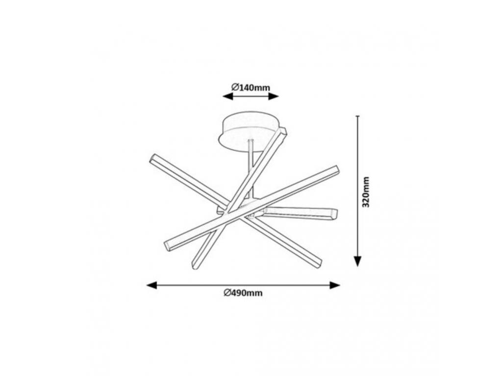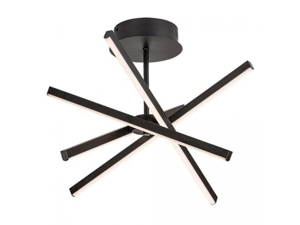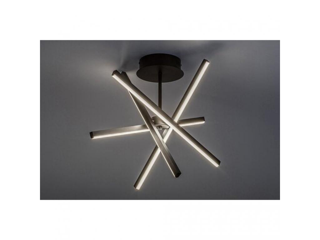 A modern stílusú Matilde mennyezeti lámpa egyedi megjelenésével a nappali, a hálószoba vagy a dolgozószoba berendezésének meghatározó darabja lehet. Ez a látványos modell egymást metsző, szögletes, rúdszerű elemekből áll, melyek mindegyike forgatható, így a lámpa formáját kedvünk szerint variálhatjuk. A fémből készült, fekete lámpát fehér szilikonbúra egészíti ki, és kisméretű, kerek dísztalp segítségével rögzíthető a mennyezetre. A Matilde a G energiaosztályba tartozó beépített LED fényforrással rendelkezik, amelynek teljesítménye 30 W, fényereje búrával 1200 lumen, búra nélkül 2040 lumen, élettartama pedig 20 000 óra. A 4000 K színhőmérsékletű fényforrás természetes fehér fénnyel világít, amely modern, tiszta hatást kelt, így ideális mind otthonunk nagy forgalmú helyiségeibe, mind munkavégzéshez. A Matilde mennyezeti lámpa méretei a következők: átmérője 490 mm, mennyezettől mért távolsága 320 mm, beépítési átmérője 140 mm.
