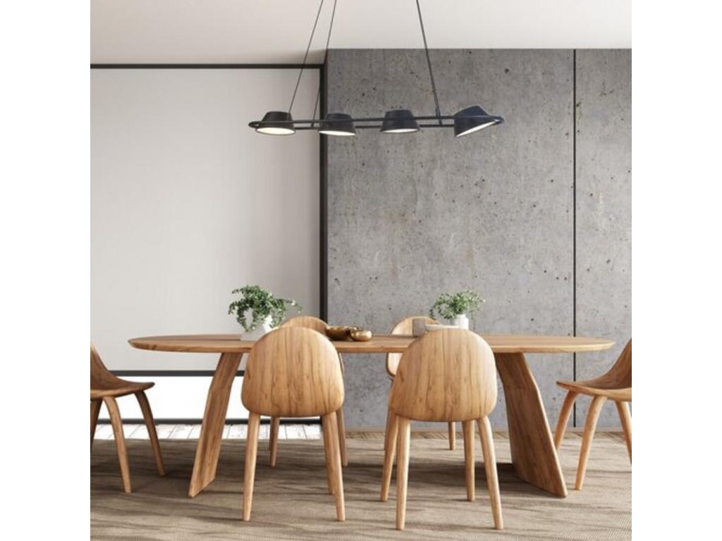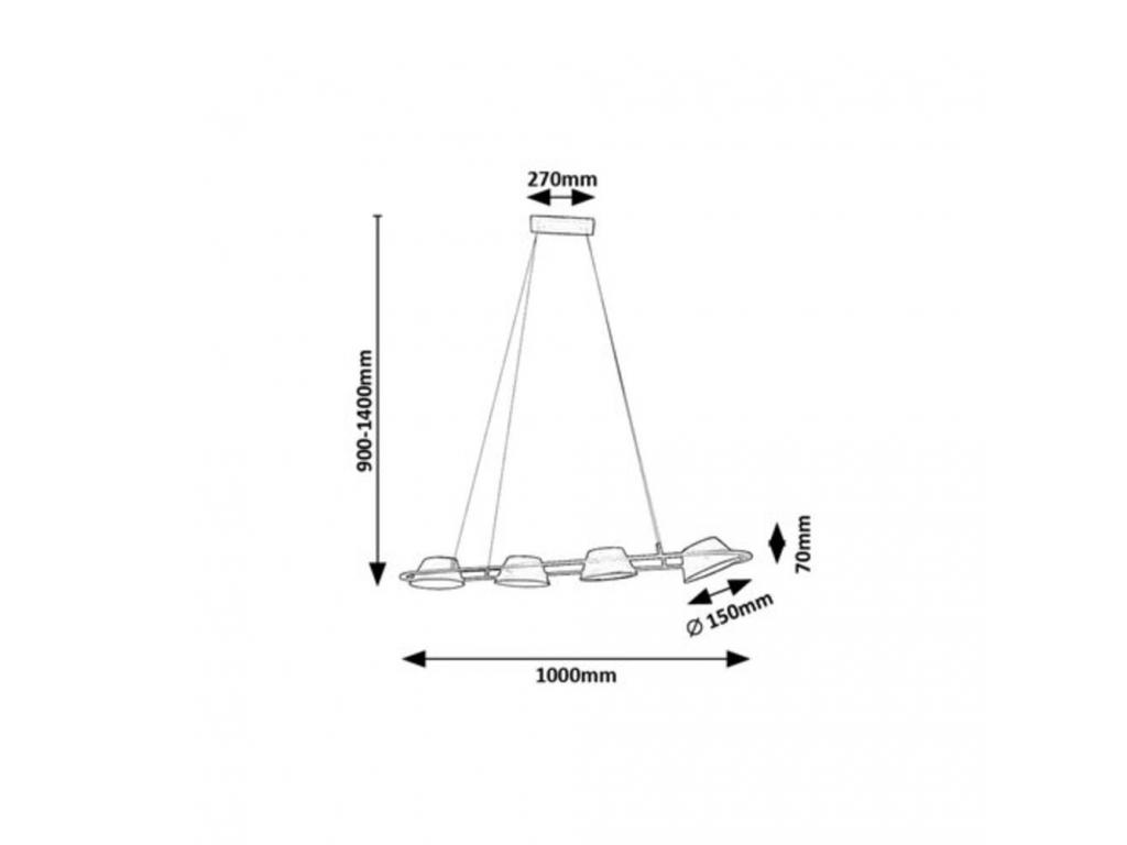 A modern stílusú, állítható Odiss négyes függesztéket elsősorban a nappaliba, az étkezőbe vagy a hálószobába ajánljuk. A fémből készült, fekete színű modellt fehér műanyagbúrák egészítik ki, és téglalap alakú dísztalp segítségével rögzíthető a mennyezetre. A fordított trapéz formájú lámpafejek a tartókábelekhez rögzített keret belső részéhez kapcsolódnak. A lámpafejek dőlésszöge állítható, így fényüket tetszés szerint irányíthatjuk, biztosítva a helyiség hatékony bevilágítását. Az Odiss a G energiaosztályba tartozó beépített LED fényforrással rendelkezik, amelynek teljesítménye 36 W, fényereje búrával 1850 lumen, búra nélkül 2250 lumen, élettartama pedig igazán kiemelkedő: 36 000 óra! A 3000 K színhőmérsékletű fényforrás meleg fehér fényt sugároz, ami segít meghitt, otthonos hangulatot teremteni. Az Odiss lámpa méretei a következők: szélessége 1000 mm, belógása 900–1400 mm között állítható, egy-egy búra átmérője 150 mm, magassága 70 mm, a függeszték beépítési átmérője 270 mm.