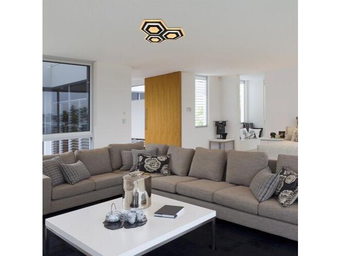 Az élénk, vidám megjelenésű Bitsi hármas mennyezeti lámpa a Rábalux saját tervezésű modellje. A három összekapcsolódó hatszögletű elemből álló lámpát azok figyelmébe ajánljuk, akik modern, izgalmas formatervezésű, egyszersmind nagy fényerejű modellt keresnek nappalijukba vagy hálószobájukba. A fekete és homoksárga színekben pompázó Bitsi fémből készül és fehér műanyagbúra egészíti ki. A mennyezeti lámpa beépített LED fényforrással rendelkezik, amelynek a teljesítménye 72 W, a lámpa fényereje 3200 lumen, a fényforrás fényereje 9100 lumen, színhőmérséklete pedig változtatható: 3000+6000 K kombináció állítható be. A Bitsi fényereje ugyancsak szabályozható – a színhőmérséklethez hasonlóan távirányító segítségével. Az ultravékony kialakítású mennyezeti lámpa mérete 415x415 mm, mennyezettől mért távolsága pedig mindössze 45 mm.