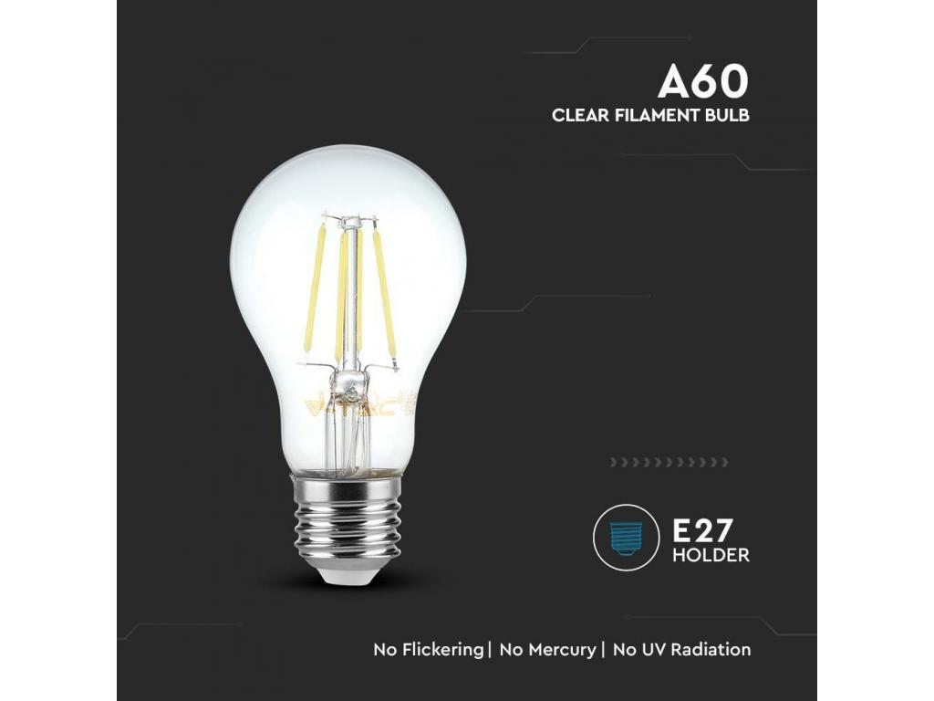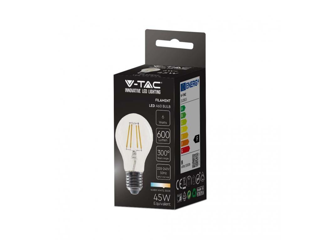 VT-1887 6W A60 Izzószálas Izzó, Átlátszó Burával, 3000K, E27