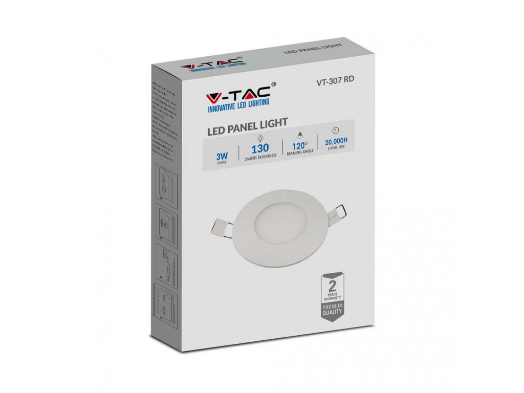 VT-307 3W LED Panel Lámpa Emc Meghajtóval 6400K Kerek