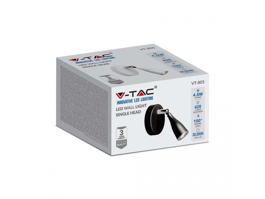 A VT-805 4,5 W-Os LED Fali Lámpa, 3000 K, Fekete leírása: