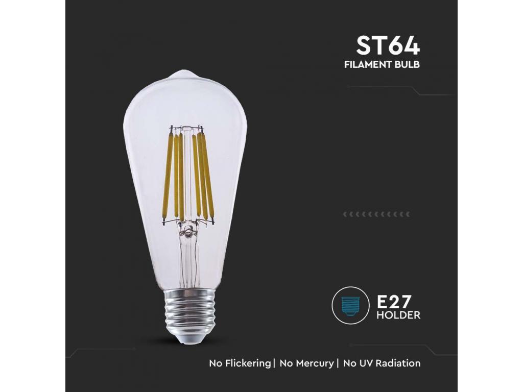 A VT-2364 4W St64 Izzószálas Izzó, Átlátszó Burával, 3000K, E27, 210Lm/W leírása: