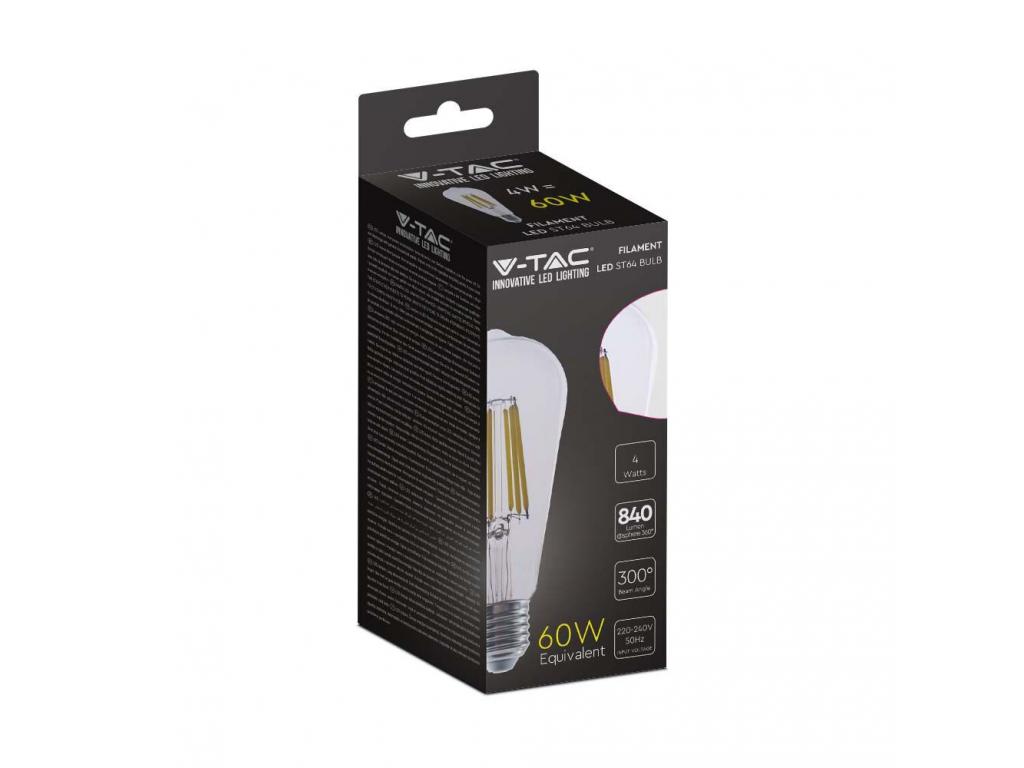 VT-2364 4W St64 Izzószálas Izzó, Átlátszó Burával, 3000K, E27, 210Lm/W